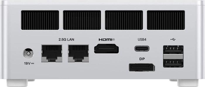 - Combo 3,5 mm ×1, USB‑A (USB 3.2 Gen 2) ×2, USB‑A (USB 2.0) ×2, USB‑C (USB4 40 Gb/s, Alt DP, entrée PD 65–100 W, sortie PD 15 W) ×1, DC 19 V, 2 × LAN 2,5 GbE, HDMI 2.1 ×1, DP 1.4 ×1