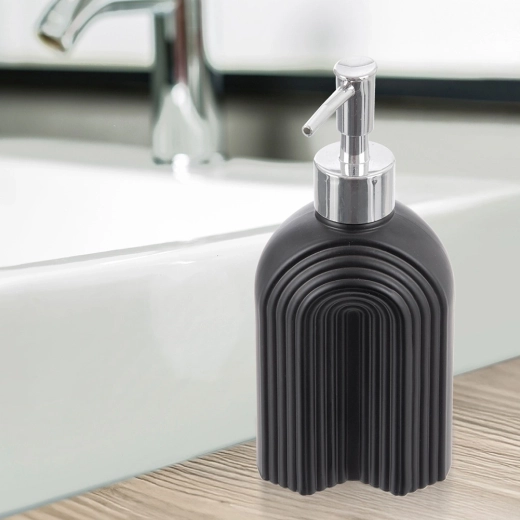 Corps en verre nervuré dans une élégante teinte noire avec une pompe brillante, offrant un look premium pour la salle de bain et la cuisine tout en améliorant la prise en main.