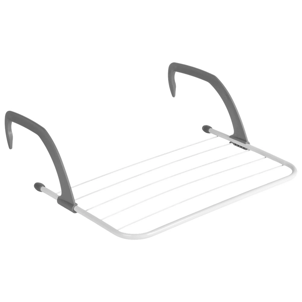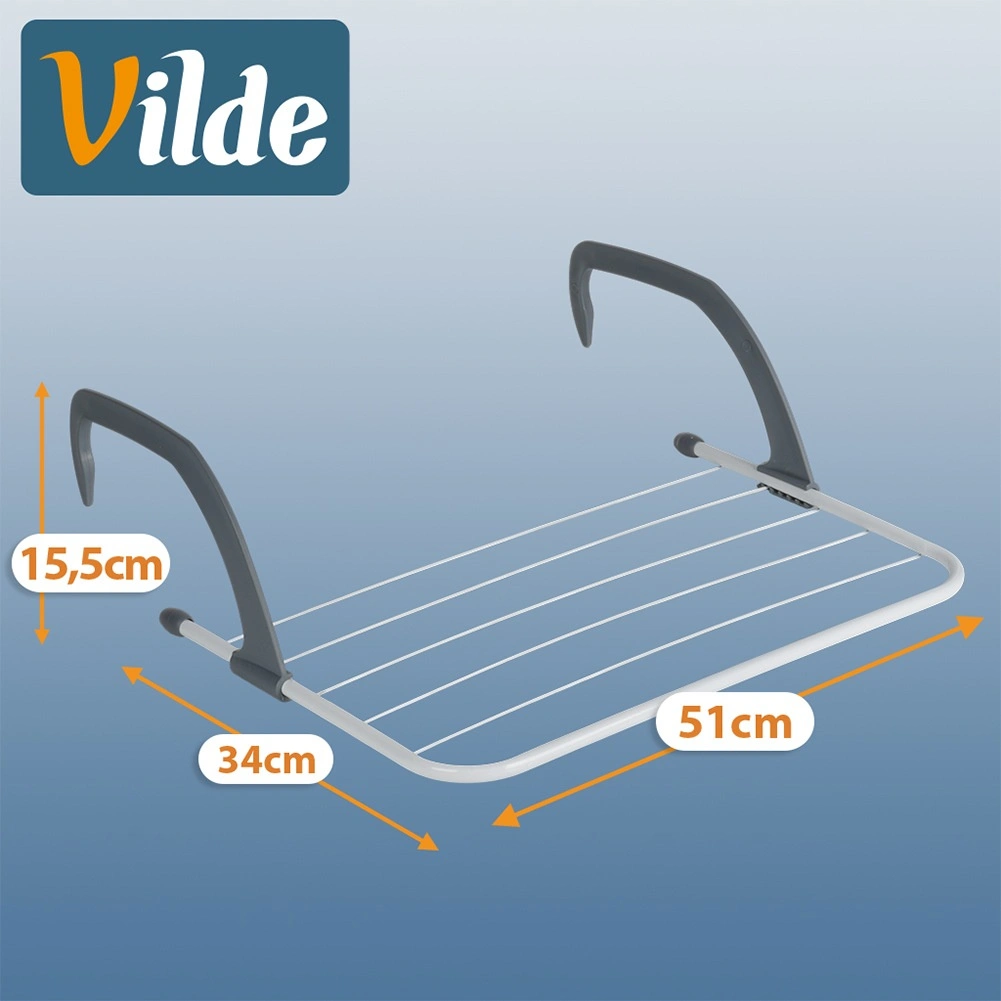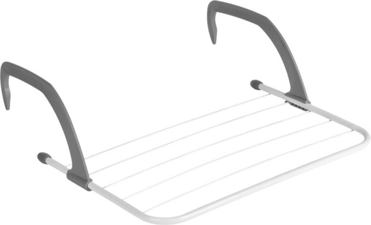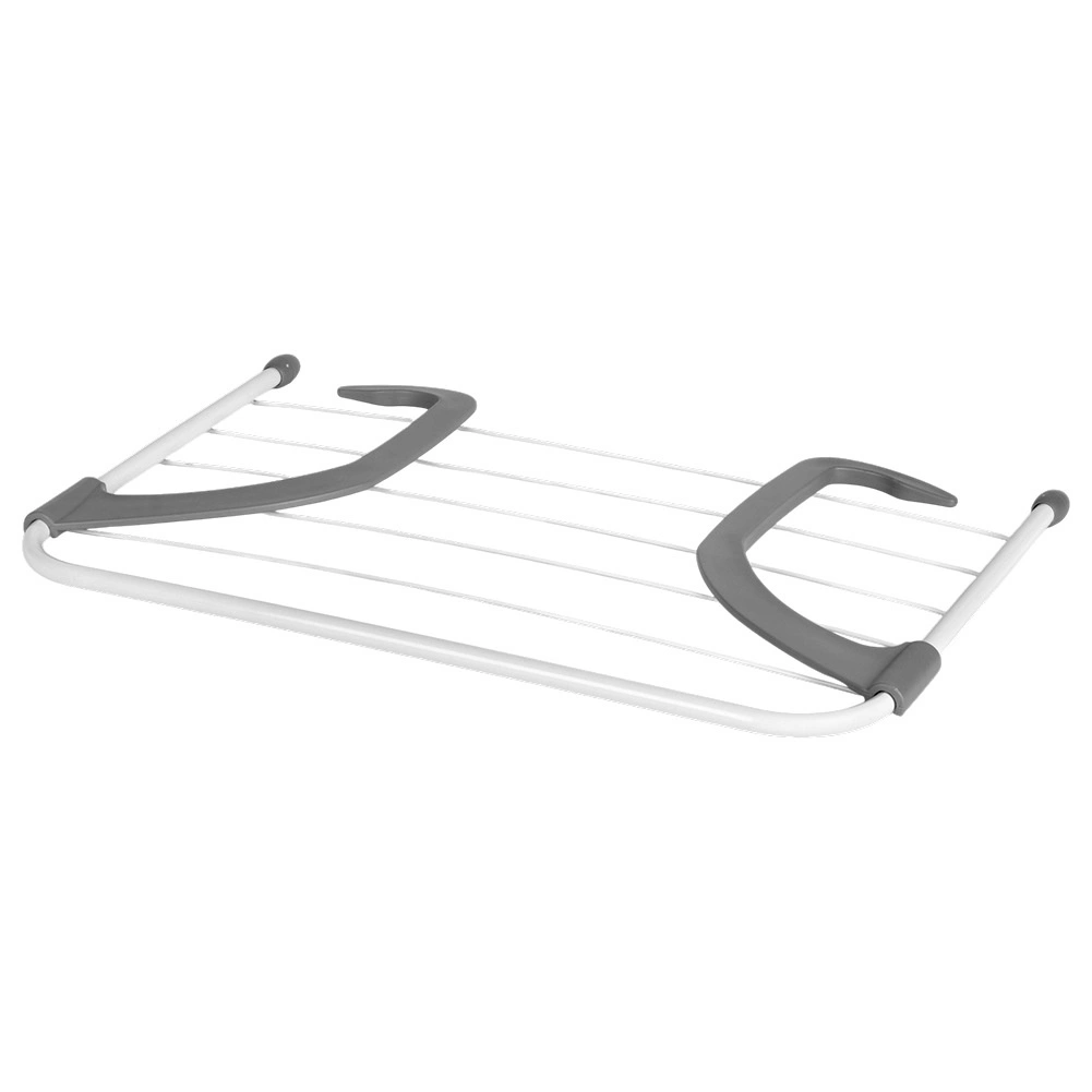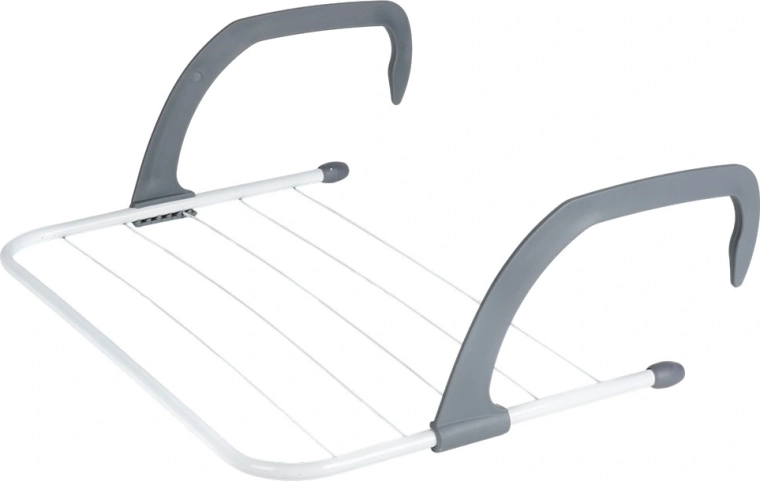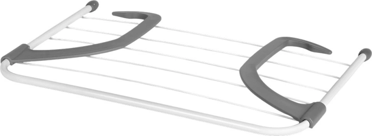 Sèche-linge compact à suspendre sur radiateur qui économise de la place et accélère le séchage du linge grâce à la chaleur du chauffage. Il mesure 51 × 34 × 15,5 cm, est en métal résistant de couleur blanche avec des crochets gris et offre 6 tiges pour une surface de séchage totale de 282 cm et une capacité de charge jusqu’à 6 kg. Des bras pliables et réglables permettent de l’accrocher au radiateur, à une rambarde ou au balcon sans perçage.