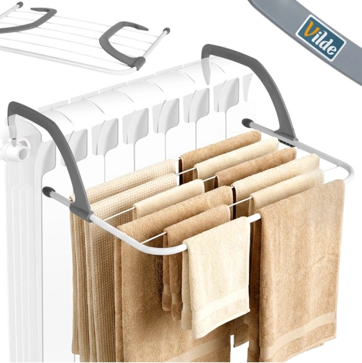 Les bras gris s’adaptent à la largeur du radiateur jusqu’à env. 13 cm et se replient facilement après usage pour un rangement compact.