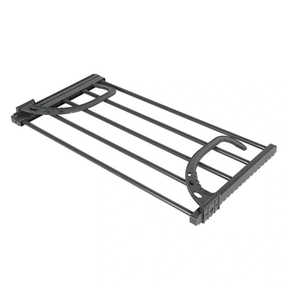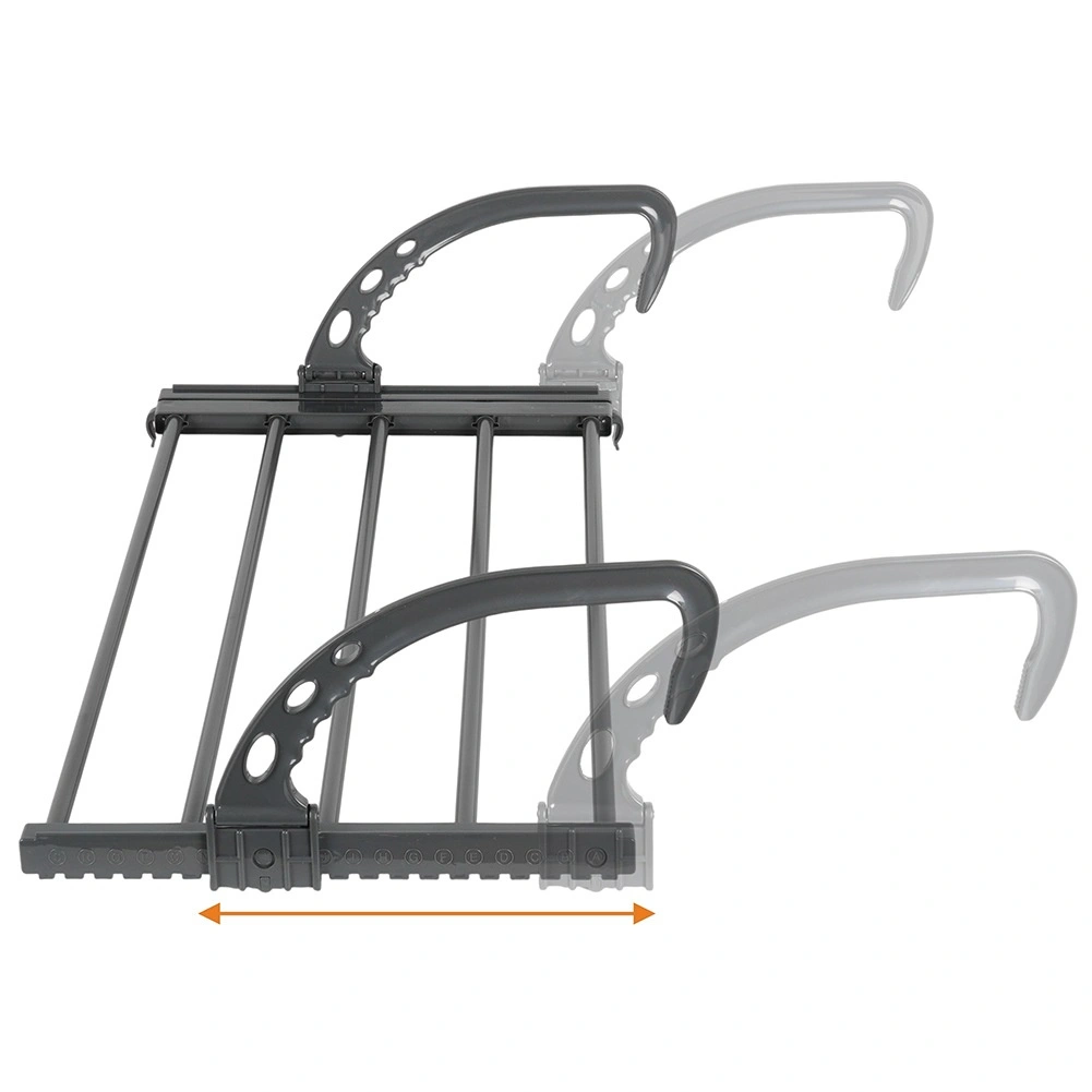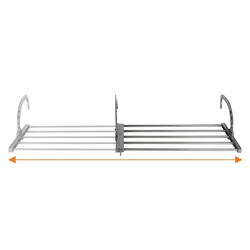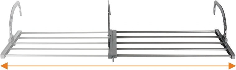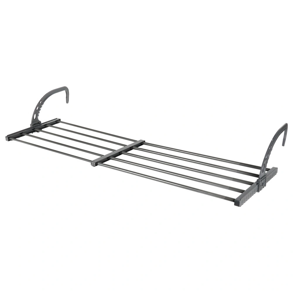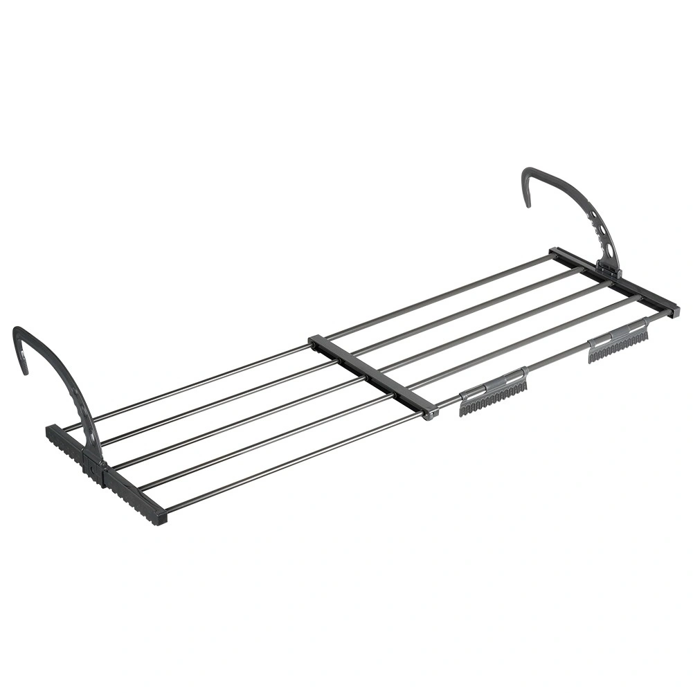 Des crochets réglables et pliants s’ajustent en toute sécurité au chauffage (max. 13 cm) ou au garde-corps du balcon. Installation rapide sans outils.