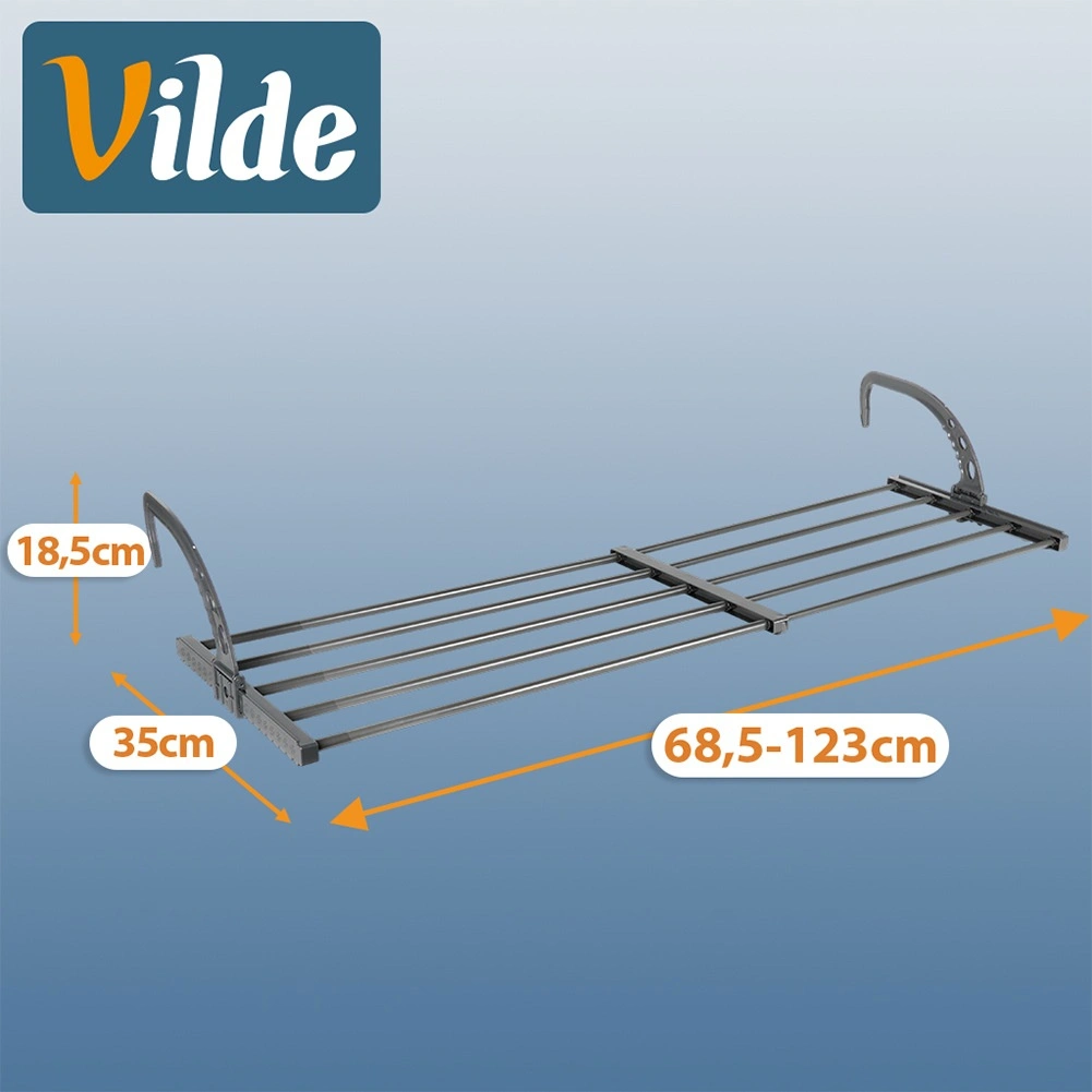 Étendoir à linge pratique à suspendre sur radiateur ou garde-corps, gain de place, offrant jusqu’à 560 cm de surface de séchage. Grâce à sa largeur extensible de 68,5–123 cm, à ses crochets pliants et à sa structure métallique robuste, il est idéal pour les petits appartements, les salles de bain et les balcons. Capacité jusqu’à 9 kg.