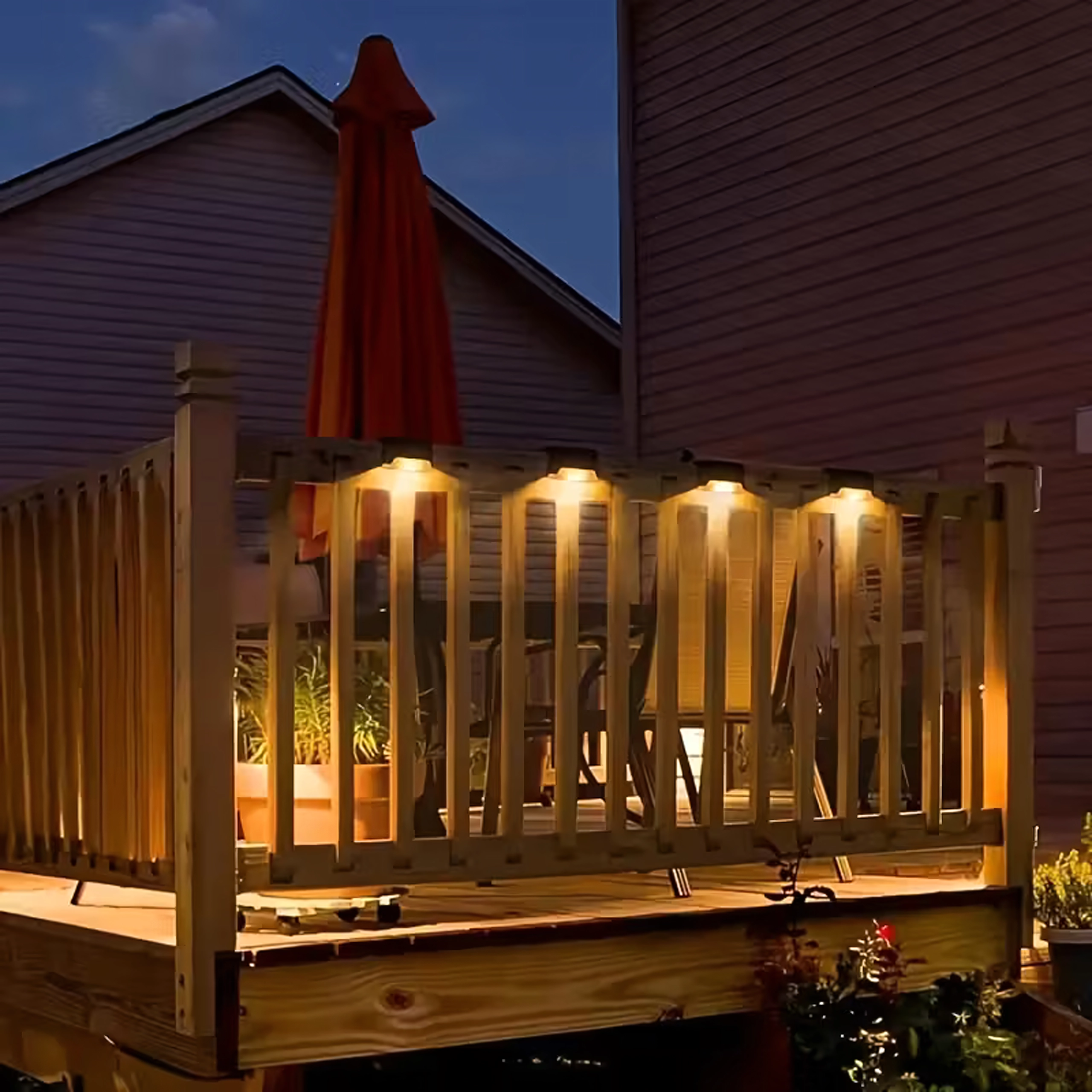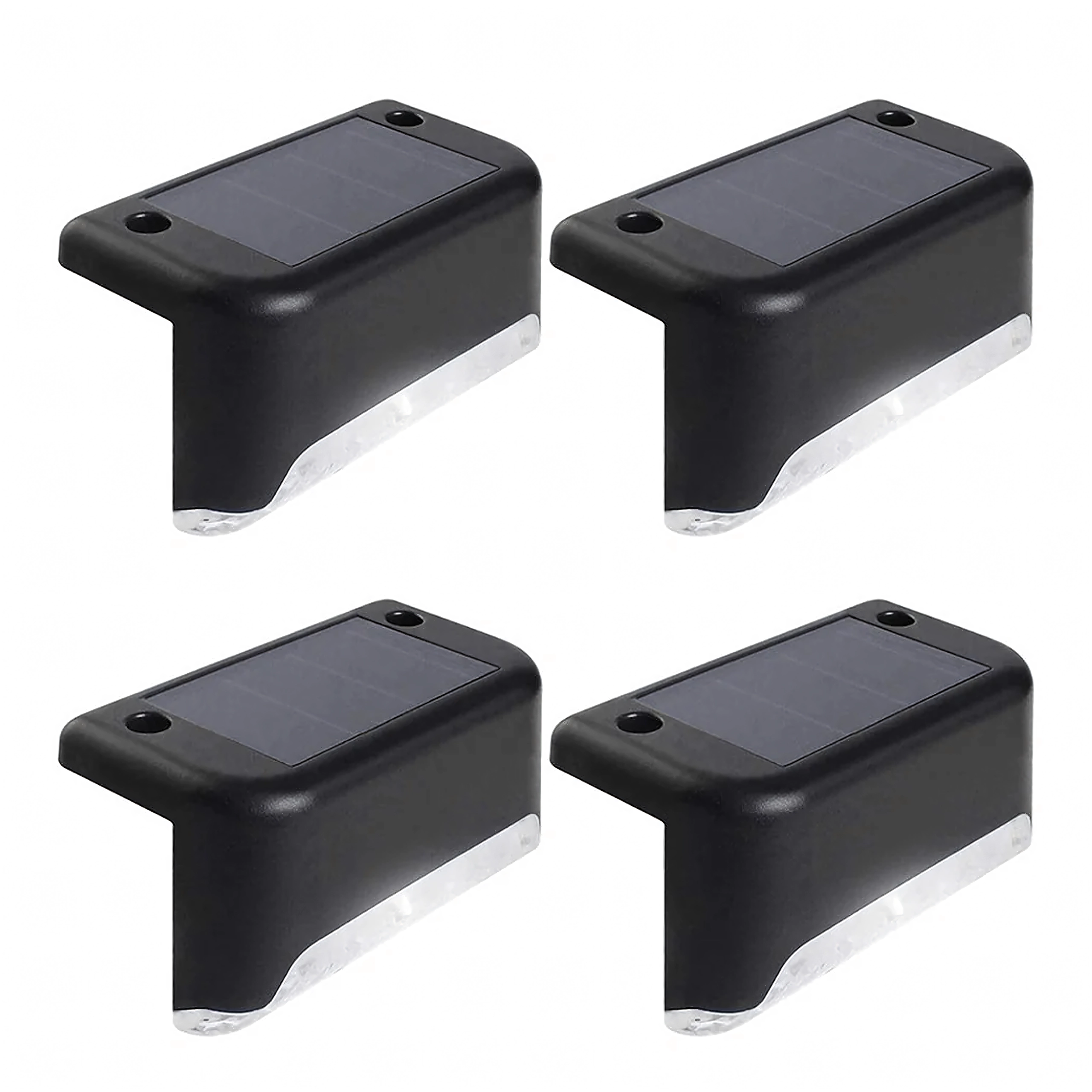 Pratique lot de 4 lampes solaires d’extérieur pour éclairer en toute sécurité les escaliers, terrasses et garde‑corps. Allumage automatique au crépuscule, LED économes, lumière chaude et agréable et conception étanche pour une utilisation toute l’année sans câbles.