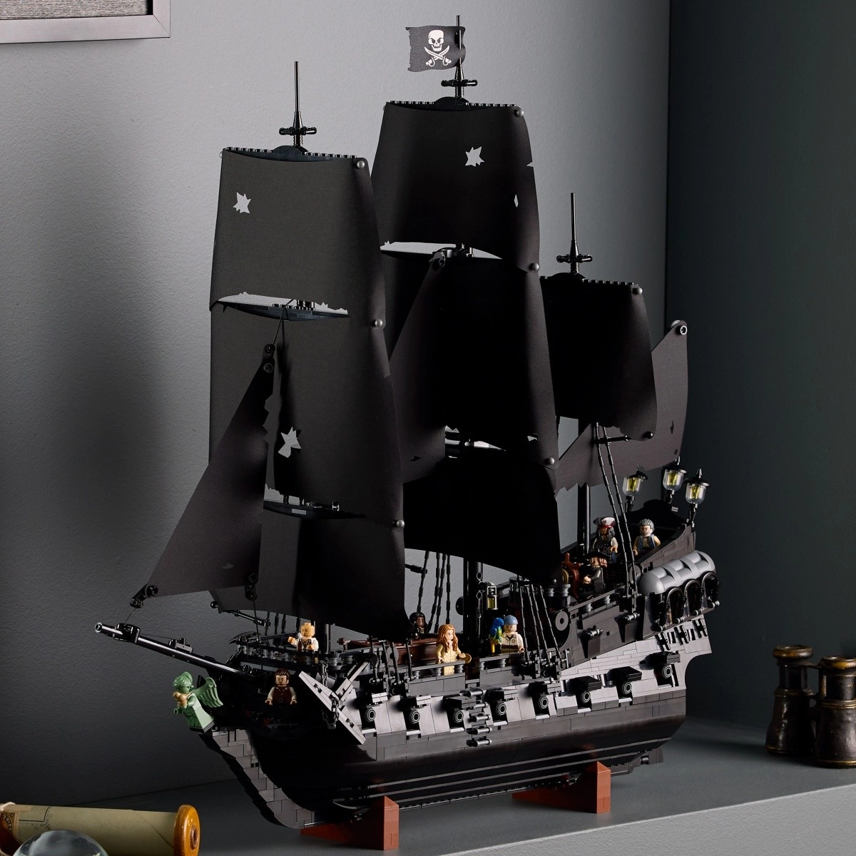 Construisez la légendaire galion fantomatique inspirée de la saga Pirates des Caraïbes. Le modèle séduit par ses hauts mâts, ses voiles noires ornées du symbole tête de mort et os croisés, son pont et son intérieur richement détaillés, incluant mobilier, chandeliers et la célèbre pomme du capitaine. Grâce au support universel, le navire se présente facilement en angle comme une décoration saisissante pour le salon ou le bureau.