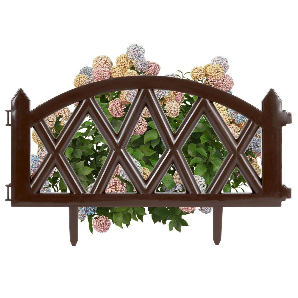 Cette bordure de jardin décorative marron en plastique résistant apporte une finition soignée et un délimitage net aux massifs et aux allées. Le lot de 6 pièces de 50 × 30 cm (300 cm au total) s’installe facilement grâce aux piquets à enfoncer et aux verrous latéraux. Résistance au gel, aux UV et à la pluie, montage facile sans outils et design élégant à motif de treillis pour un jardin durablement ordonné.