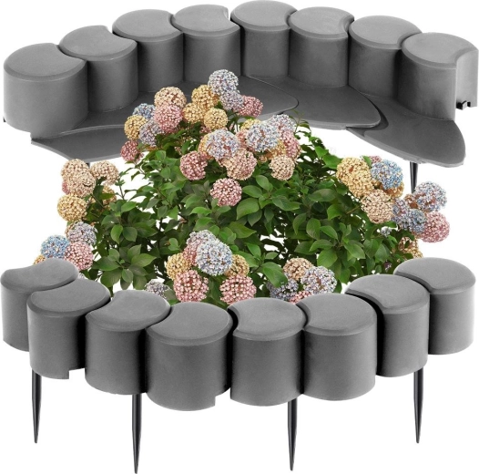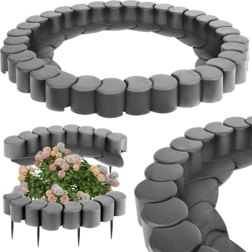 Palissade de jardin modulaire de couleur graphite élégante pour une séparation nette de la pelouse et des massifs. Le set comprend 32 éléments pour une longueur totale de 4,1 m. Grâce aux segments connectables, vous façonnez facilement des lignes droites, des arcs et des cercles. Résistante au gel, aux UV et à la pluie, montage rapide sans outils et bord de roulage pratique facilitant la tonte. Sous la palissade se trouve un canal pour le passage d’un câble ou d’un tuyau.