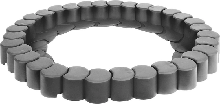 Des détails astucieux améliorent l’usage au quotidien : une rampe intégrée sur certains éléments facilite le passage de la tondeuse et un canal discret permet de faire passer un câble ou un tuyau le long du bord. L’installation est rapide – il suffit de planter les segments dans le sol et de les verrouiller.