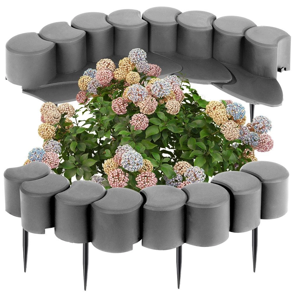 Obtenez des bordures de massifs parfaitement soignées avec la palissade de jardin graphite. Chaque élément s’emboîte précisément dans le suivant, ce qui permet de créer facilement la forme souhaitée et de garder un jardin clair et esthétique. Le plastique de qualité résiste aux intempéries toute l’année et ne nécessite aucun entretien.