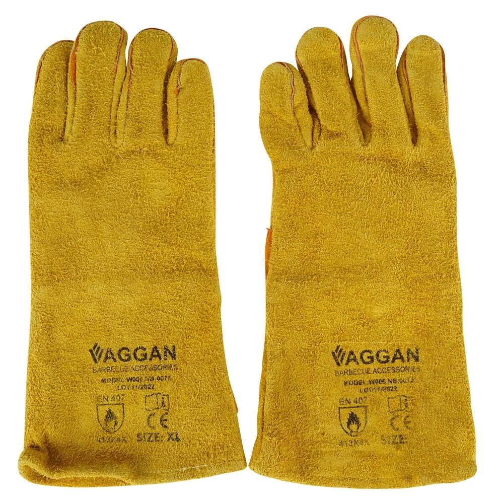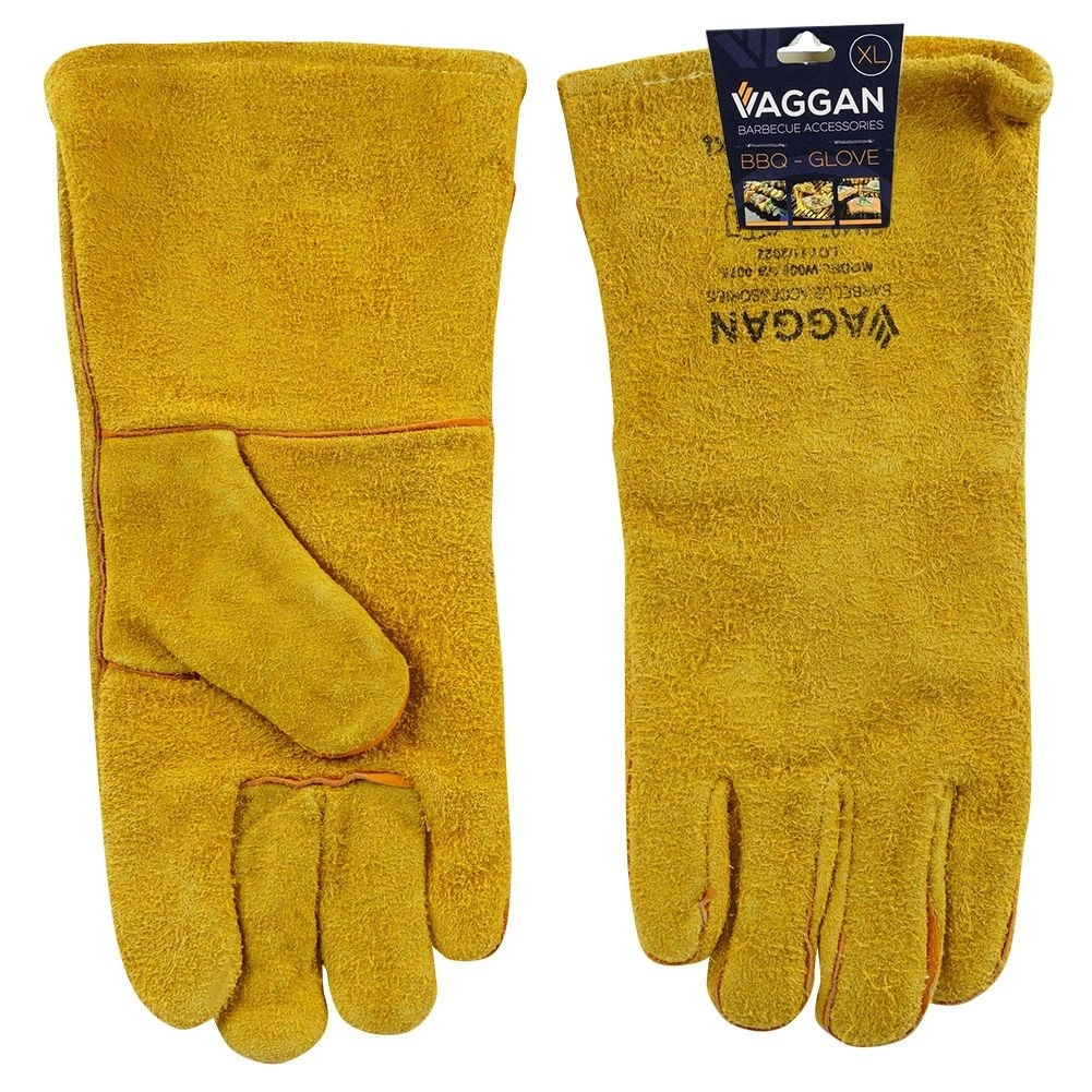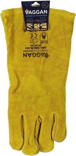 Une paire de gants de barbecue en cuir de qualité, longueur 34 cm, taille XL, protège efficacement les mains et les avant-bras contre la chaleur. Grâce à la doublure intérieure en polaire, ils sont confortables et, réalisés en cuir souple de teinte moutarde, également résistants aux hautes températures. Conformes à la norme EN 407 et à la classe BC, ils conviennent au barbecue, au four et à la cuisinière.