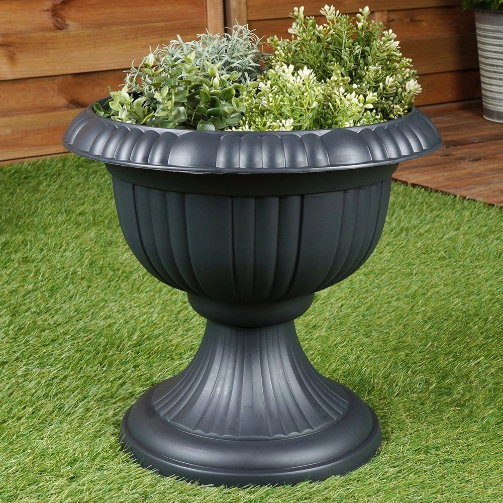 Cette jardinière au style de calice antique rehausse instantanément l’apparence de tout espace extérieur. La teinte anthracite se combine aisément avec divers types de plantations et d’accessoires. Grâce au plastique de qualité, la jardinière est facile à déplacer, tout en étant solide et stable.