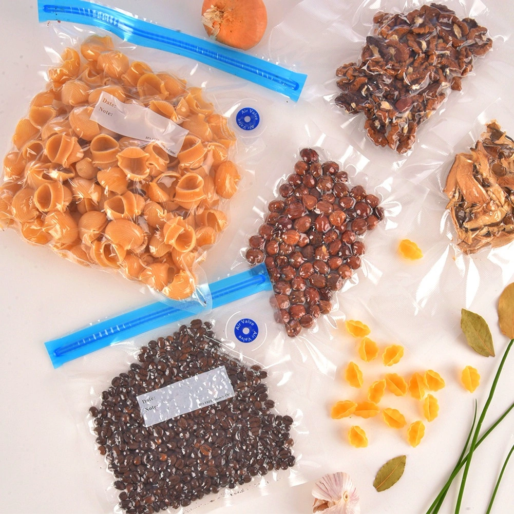Gardez viandes, fromages, légumes et pains frais plus longtemps grâce à ces sachets sous vide fiables avec double zip et valve pour une extraction rapide de l’air. Un côté est lisse, l’autre présente une texture en relief pour un vide homogène et une soudure solide.