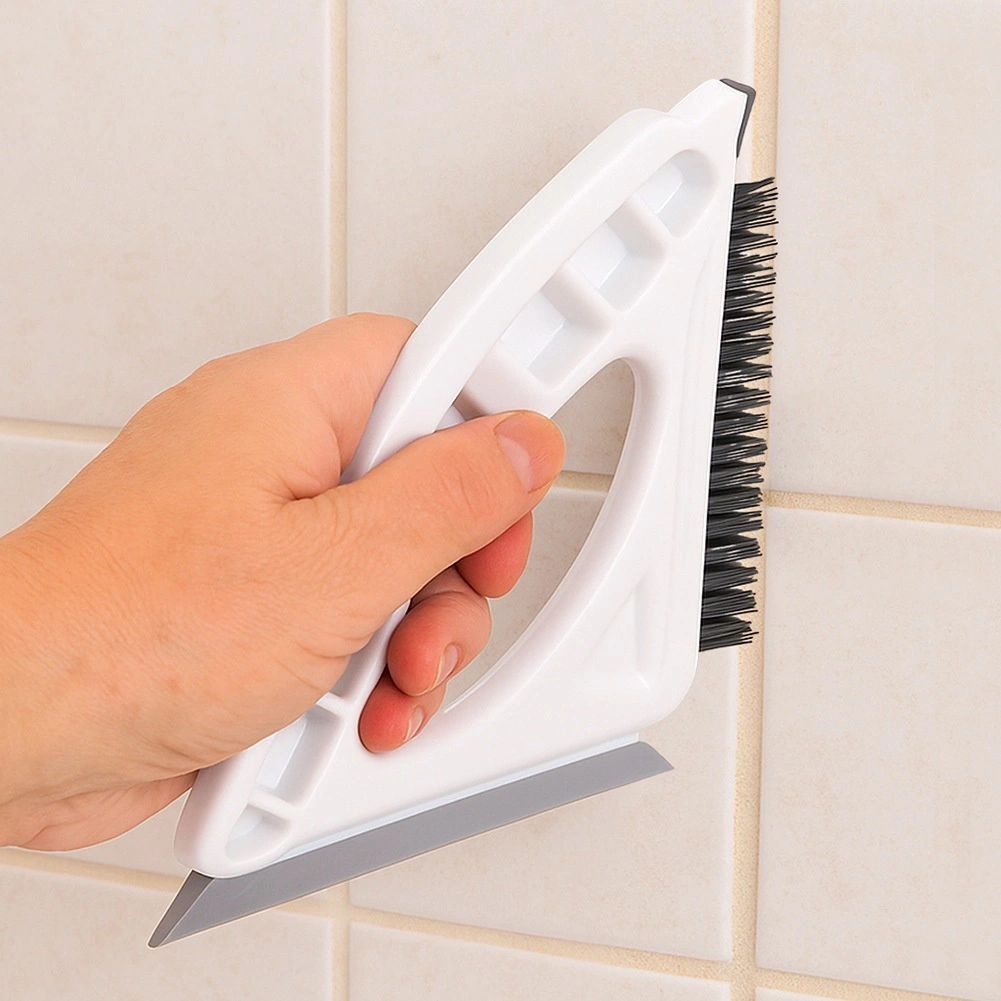 La brosse multifonction 3‑en‑1 est un assistant compact pour le nettoyage quotidien. Les poils durs nettoient en profondeur les joints entre les carreaux et les fentes étroites, la raclette évacue rapidement l’eau des surfaces lisses et le grattoir enlève les dépôts séchés. Grâce à son trou pour le doigt bien pensé et à sa surface antidérapante rainurée, vous gardez l’outil toujours bien en main.
