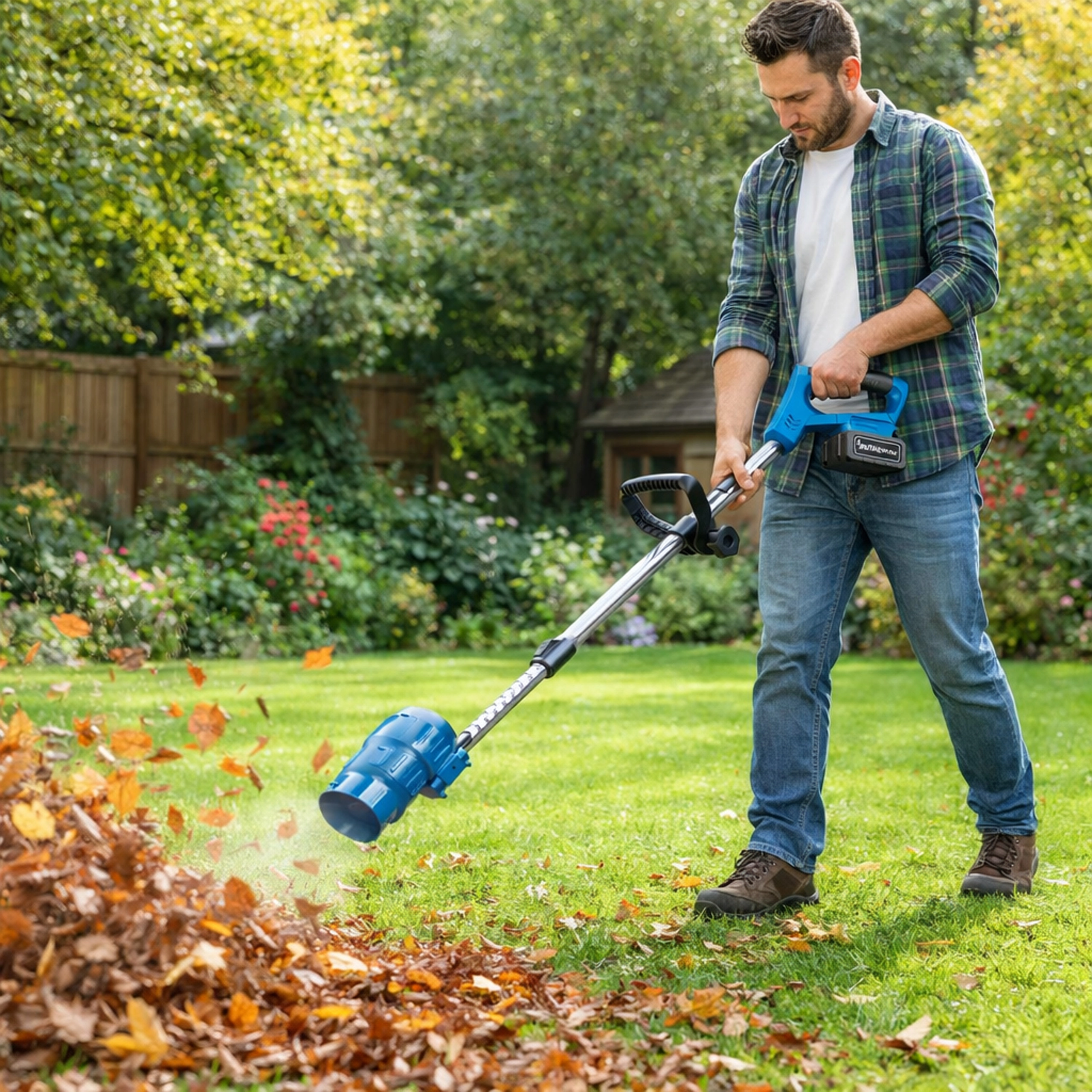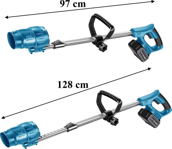 Ajustez la longueur de l’outil pour un soufflage confortable et repliez-le facilement après usage. La poignée auxiliaire améliore la sûreté de la prise et la maniabilité.