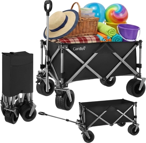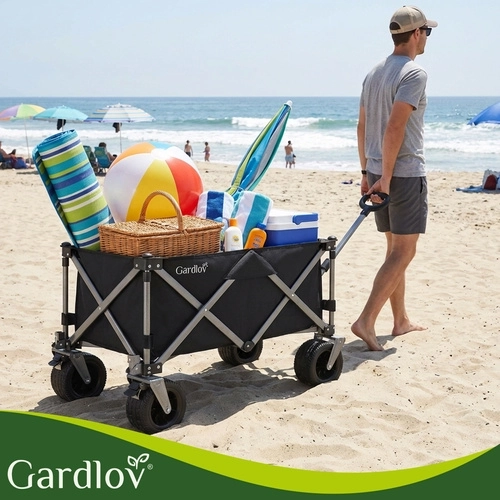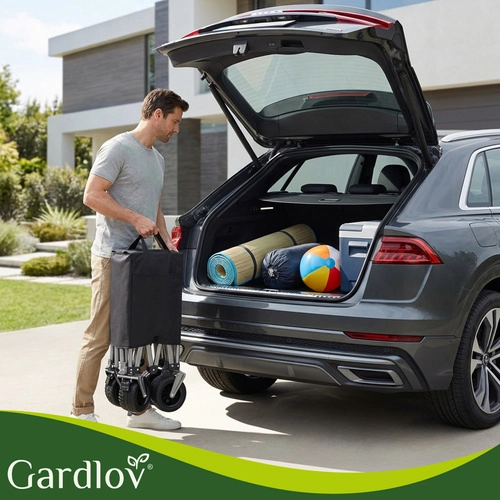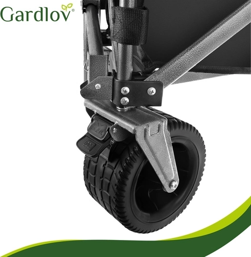 Vous cherchez un chariot de transport fiable pour le quotidien comme pour les escapades du week-end ? GARDLOV gère sans problème les sacs de terre, les outils, ainsi que l’équipement de sport ou de plage. Le cadre en acier stable avec peinture époxy et le tissu Oxford 600D imperméable résistent à un usage intensif, tandis que les roues avant avec frein assurent une immobilisation sûre pendant le chargement.