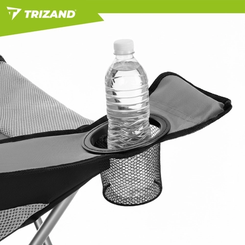 La chaise pliante TRIZAND en coloris gris‑noir offre une capacité de charge de 120 kg, un cadre métallique robuste et des panneaux respirants pour un confort toute la journée au bord de l’eau comme au camping. Grâce au pliage rapide et à la housse incluse, elle se transporte facilement, tandis que les accoudoirs avec porte‑gobelet assurent une détente sans compromis.