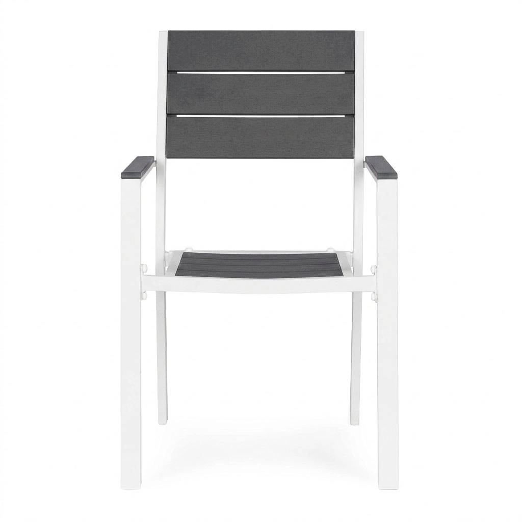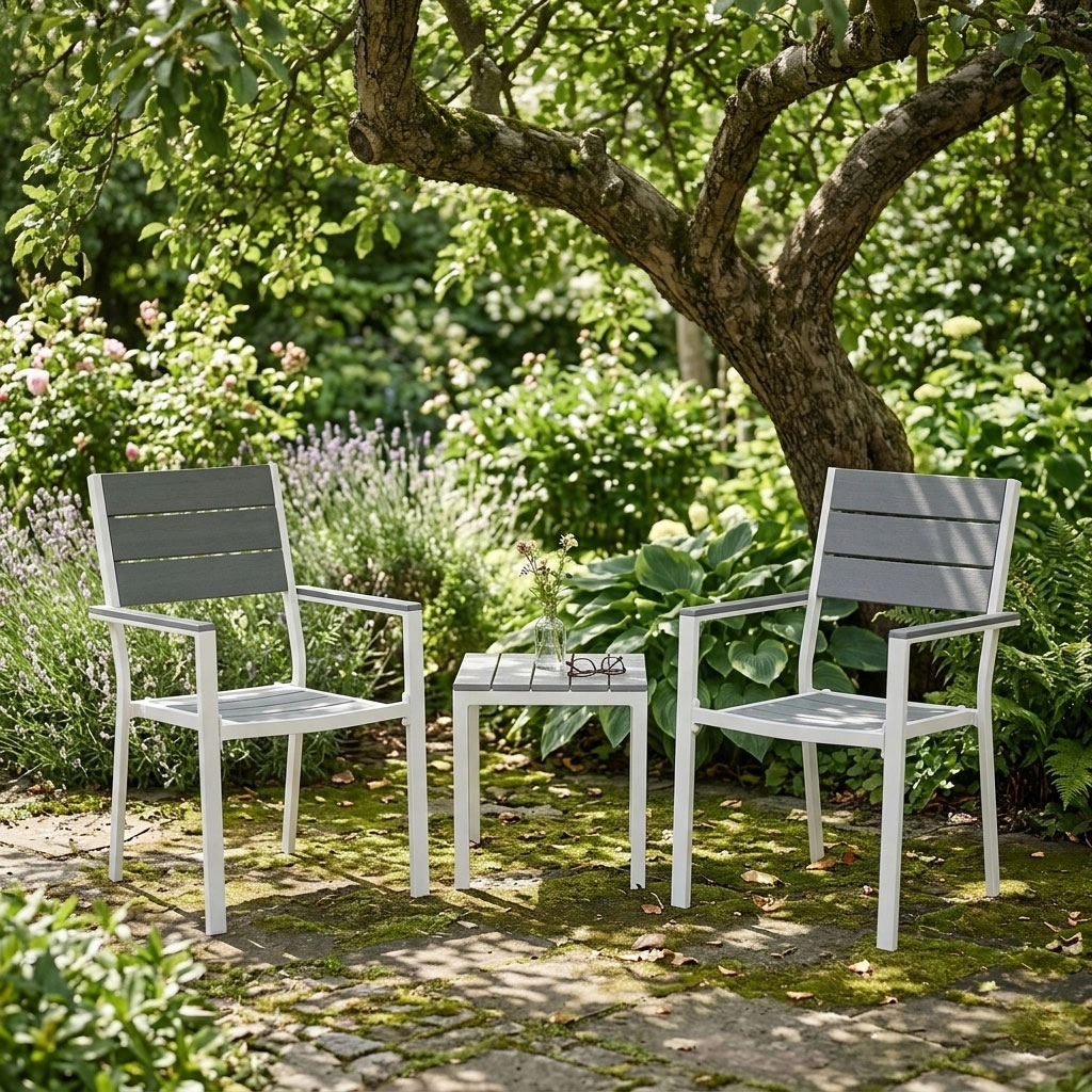 Le cadre en acier thermolaqué offre une excellente résistance à la corrosion, tandis que les éléments en HDPE sont légers, robustes et faciles à nettoyer. Les matériaux supportent l’humidité et les écarts de température, ce qui rend ces fauteuils parfaits pour une utilisation toute la saison sur la terrasse comme au jardin.