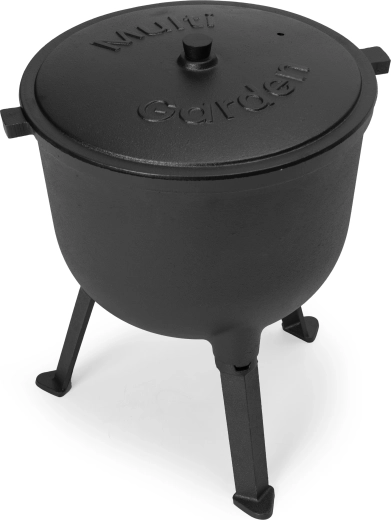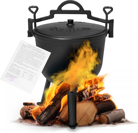 La construction à trois pieds et la fonte robuste permettent une cuisson sûre directement dans le foyer. Idéal pour le goulasch, les soupes et les plats mijotés.