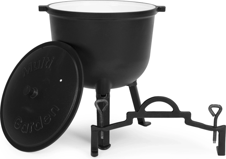 Découvrez le goût authentique des plats au feu. Le chaudron en fonte MULTIGARDEN de 10 litres conduit et accumule parfaitement la chaleur, ce qui le rend idéal pour mijoter lentement, bouillir et même rôtir des goulaschs, soupes ou plats uniques. Son intérieur émaillé lisse se nettoie facilement et ne nécessite ni culottage ni huilage spécifique avant la première utilisation.