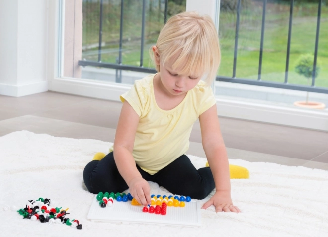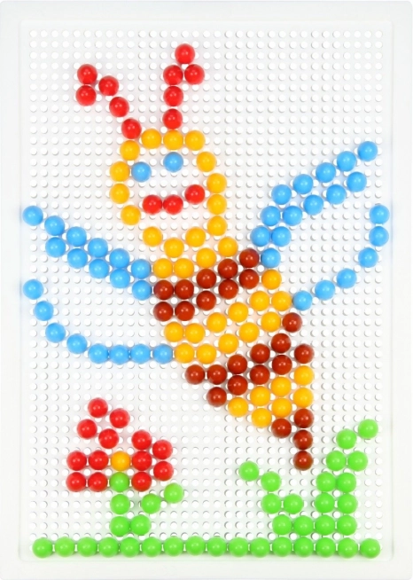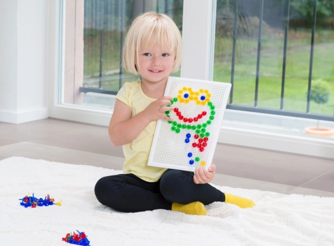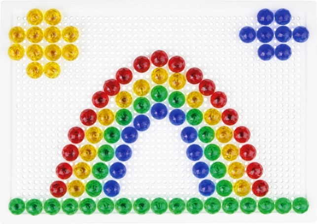 Chevilles de 10 mm de diamètre aux couleurs éclatantes, qui tiennent parfaitement dans une plaque en plastique robuste de 21 × 16 cm pour une création confortable.