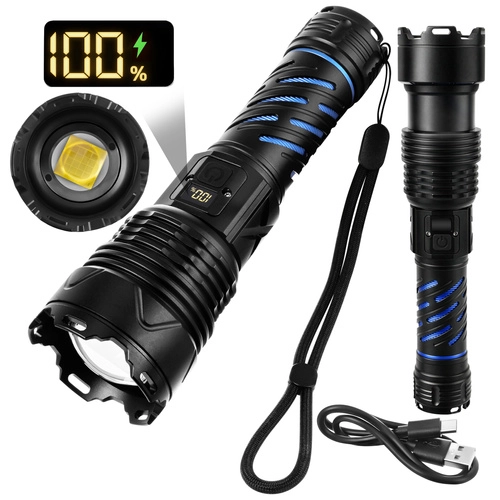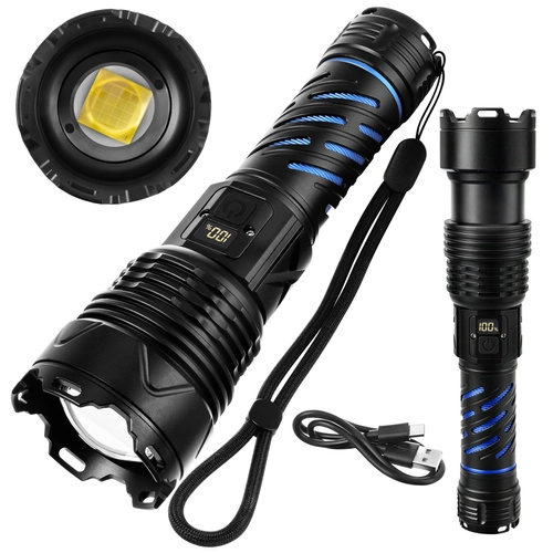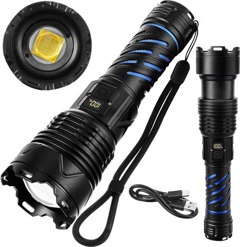 Cette lampe torche LED tactique et robuste délivre un flux lumineux de 1500 lumens avec une portée jusqu’à 500 m, pour éclairer en toute sécurité la route, la cour et les objets éloignés. Grâce au zoom, passez facilement d’un faisceau large à un faisceau étroit et concentré. L’alimentation est assurée par une batterie 26650 5000 mAh offrant jusqu’à 8 heures d’autonomie (selon le mode), rechargeable aisément via USB‑C.