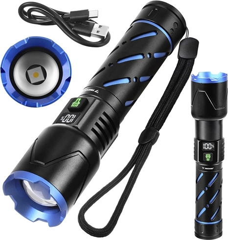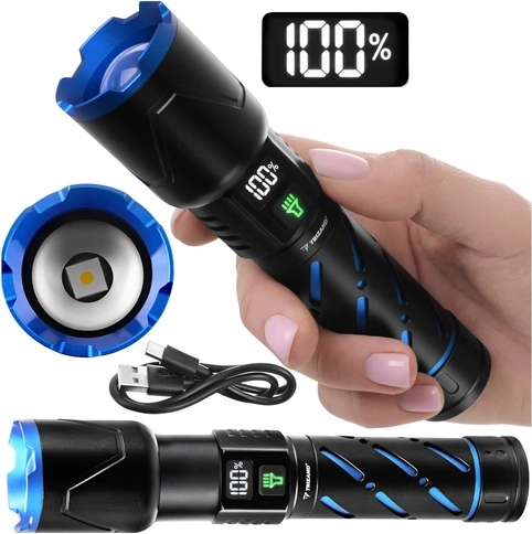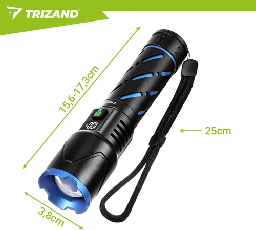 La puissante lampe tactique TRIZAND offre un flux lumineux de 800 lm, une portée jusqu’à 200 m et 3 modes d’éclairage. Grâce au zoom, à la batterie 21700 (5000 mAh) et à la recharge USB‑C, elle est idéale pour la voiture, le chalet et le terrain. Son corps en aluminium robuste, son indicateur numérique de l’état de la batterie et la fonction power bank d’urgence en font un compagnon fiable au quotidien.