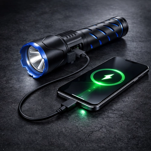 Grâce à la batterie 21700 d’une capacité de 5000 mAh, la lampe atteint 3 à 12 heures d’autonomie (selon le mode). La recharge via USB‑C est rapide et pratique, et un port USB de sortie pour la fonction power bank est disponible. L’écran numérique sur le corps de la lampe indique l’état de la batterie pour savoir quand recharger.