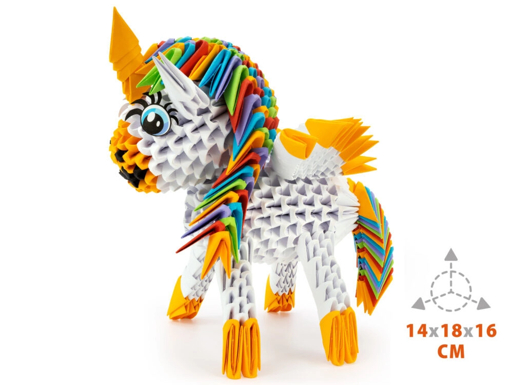 Découvrez un loisir créatif avec l’origami modulaire, qui développe l’imagination, la motricité fine et la concentration. Grâce à la forme brevetée des modules avec ligne de pliage marquée, vous plierez l’élément de base en trois étapes simples, puis assemblerez les modules sans colle pour créer une figurine de licorne solide.