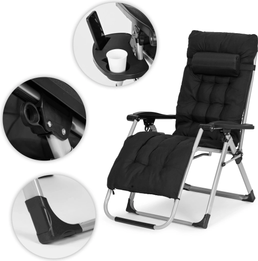 Transat de jardin réglable avec coussin et appui-tête, noir MultiGarden