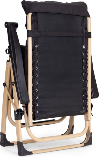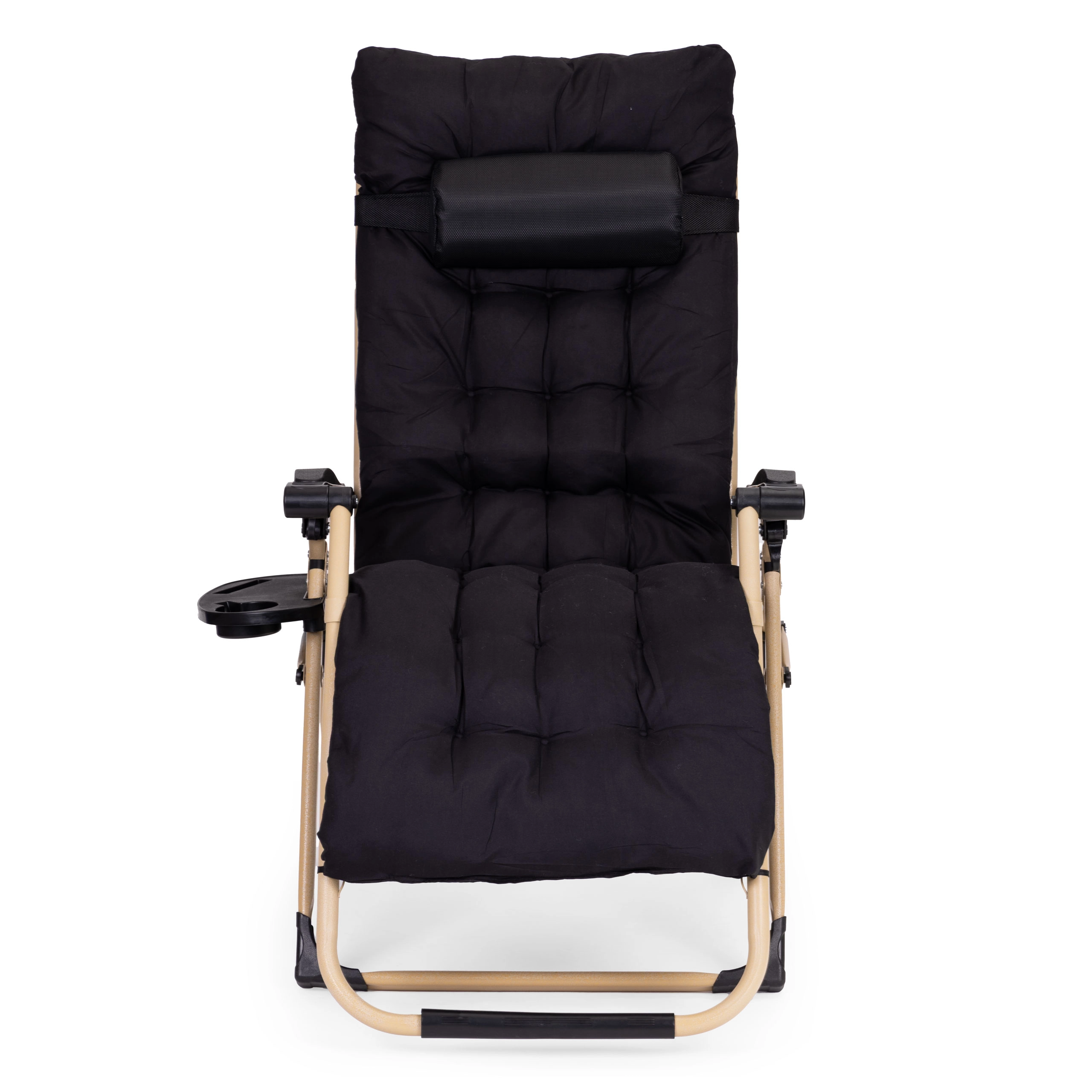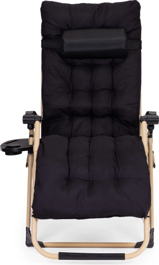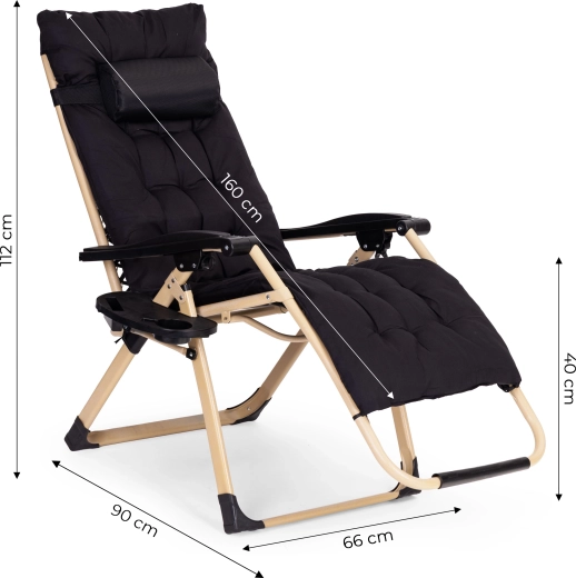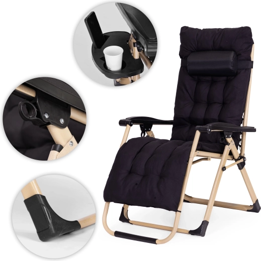 Grâce au réglage en continu et au mécanisme de blocage, vous définissez facilement l’angle idéal pour s’allonger. La position zéro gravité soulage le dos et favorise une relaxation naturelle. La tablette latérale avec porte-boisson et emplacement pour téléphone garde l’essentiel à portée.