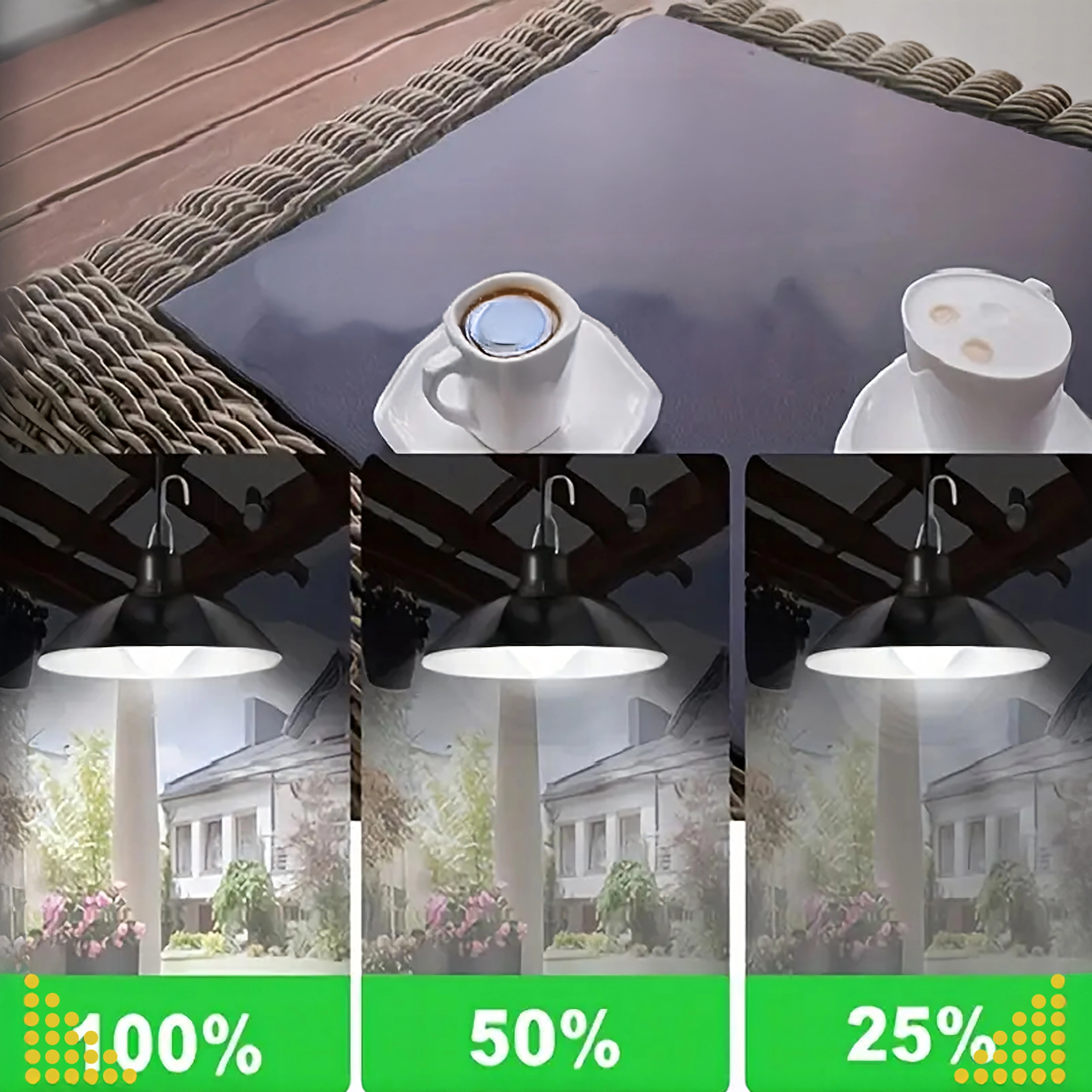 Apportez une atmosphère chaleureuse à votre extérieur sans tirer de câbles. La lampe LED solaire suspendue offre un éclairage puissant et homogène sous un large abat-jour métallique, idéale pour pergolas, terrasses, kiosques, auvents ou entrées. Le panneau solaire séparé recharge la batterie intégrée pendant la journée, et le soir la lumière s’allume automatiquement grâce au capteur crépusculaire.