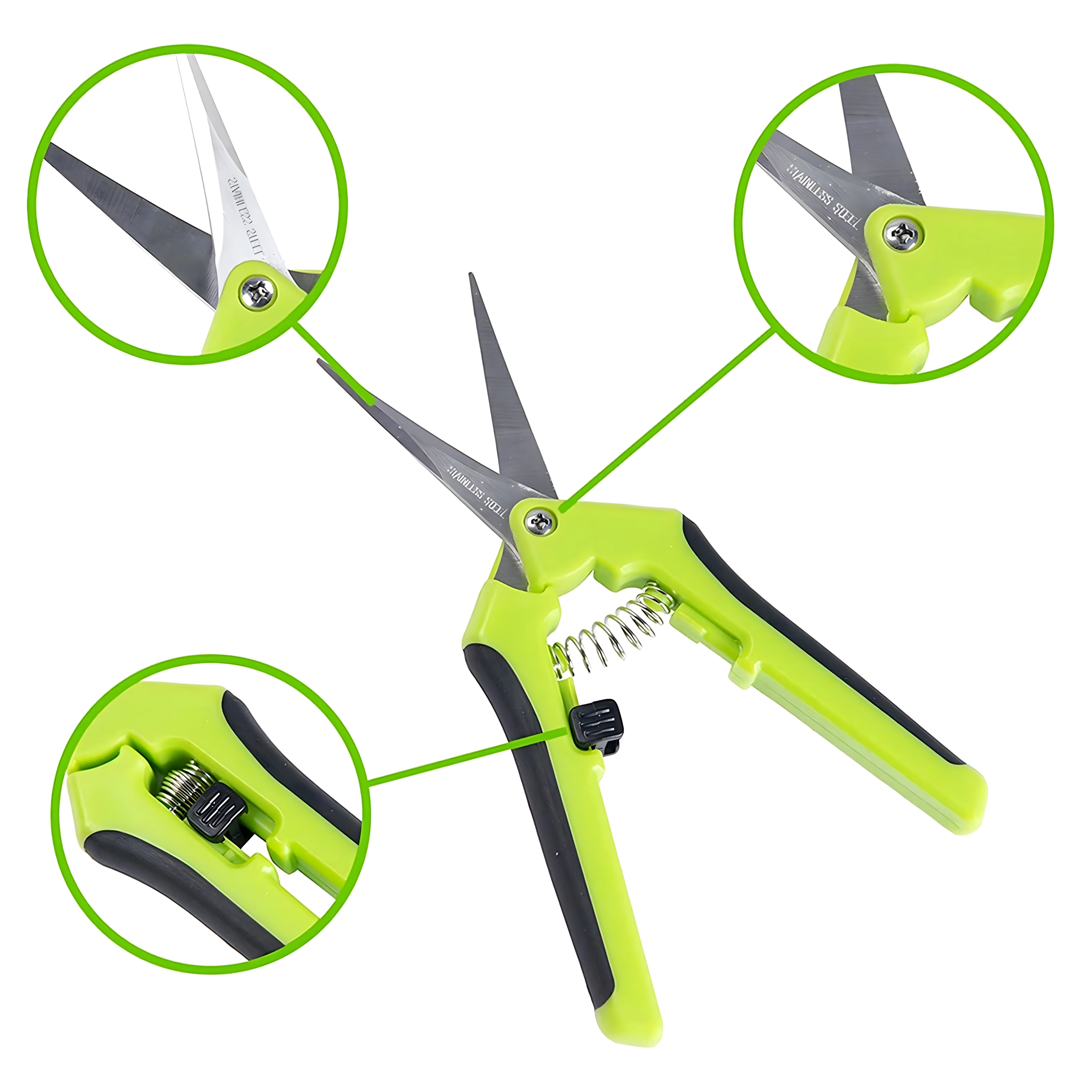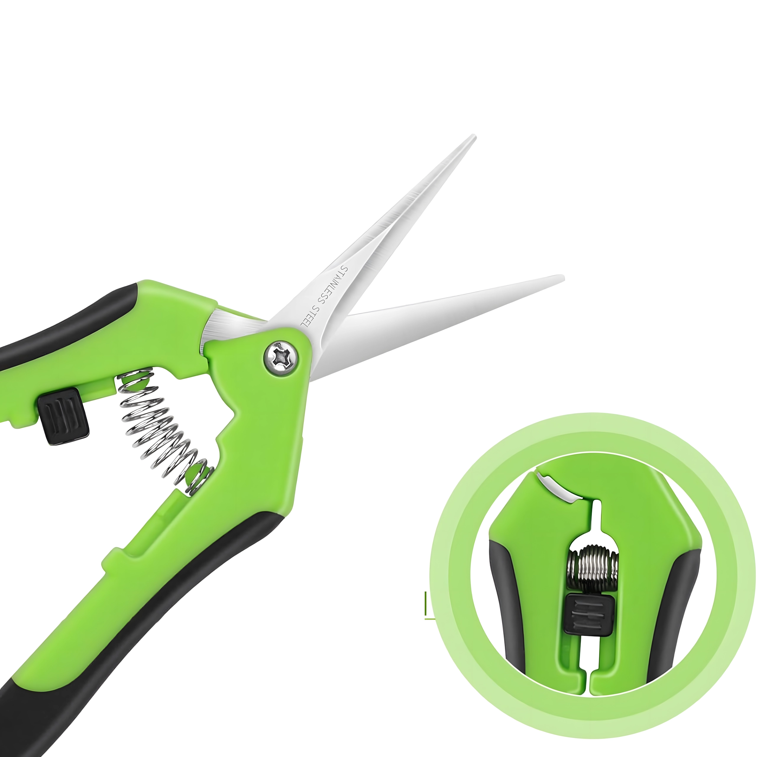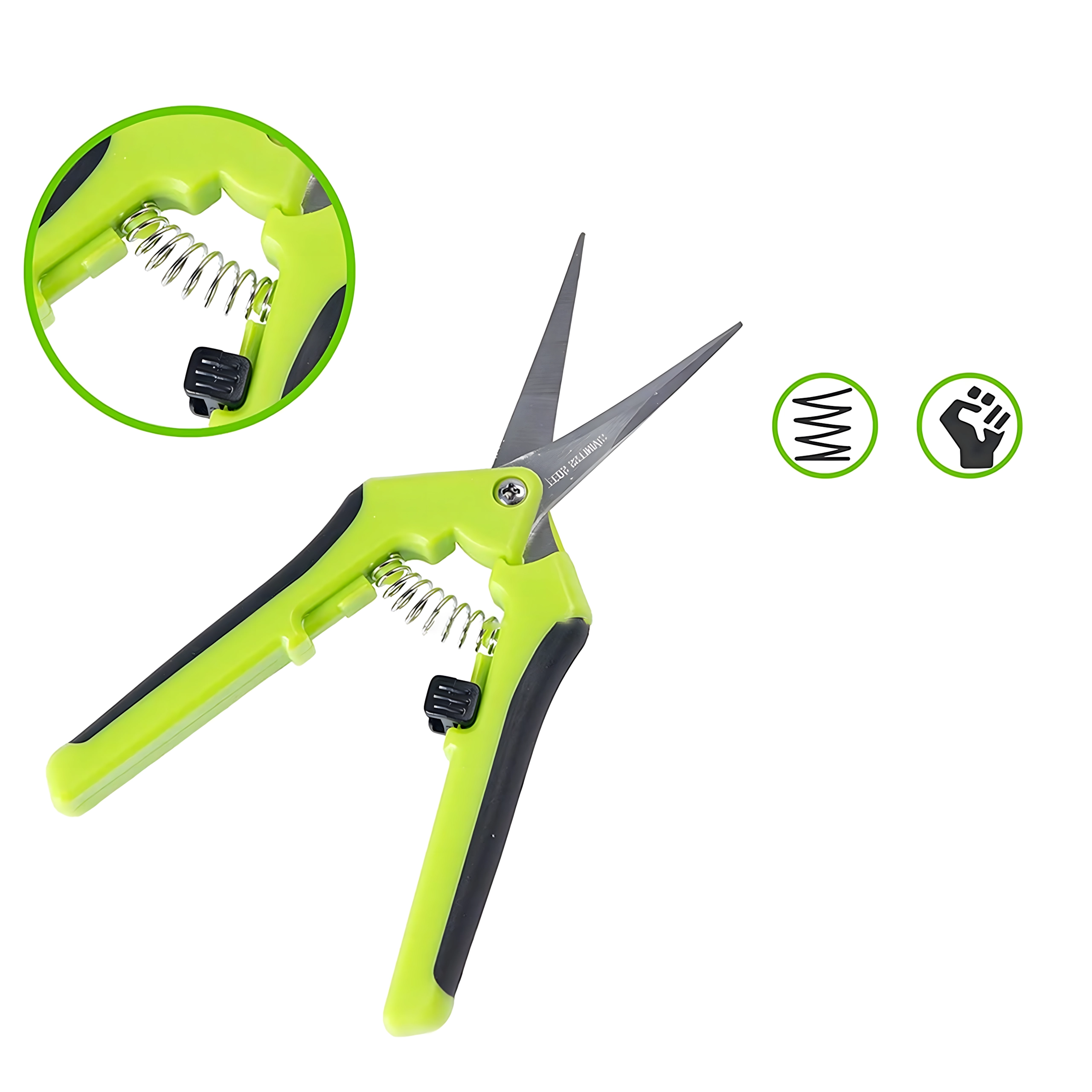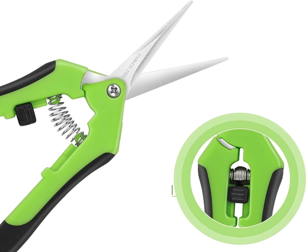 Un puissant ressort spiralé ouvre automatiquement les lames après chaque coupe, permettant un élagage rapide, répété et confortable d’une seule main.
