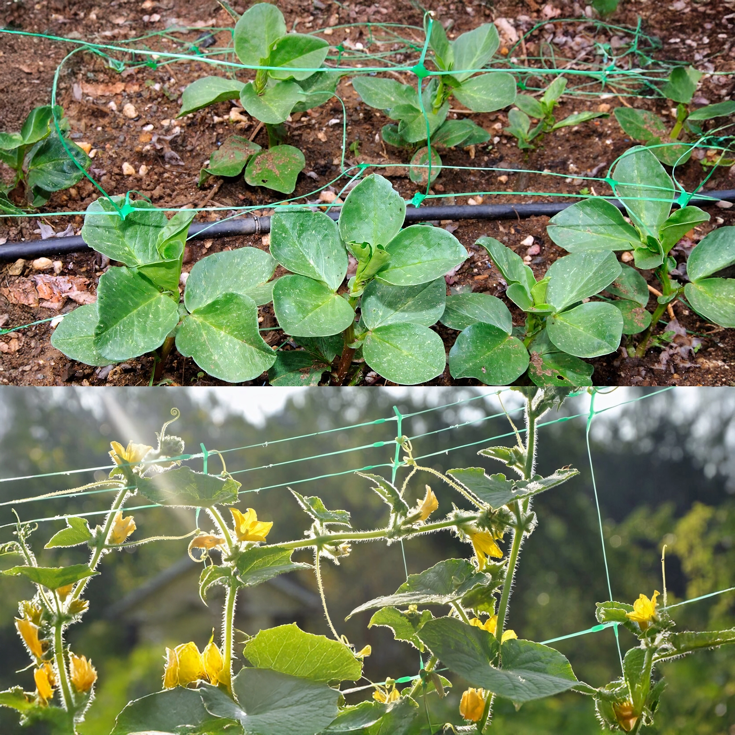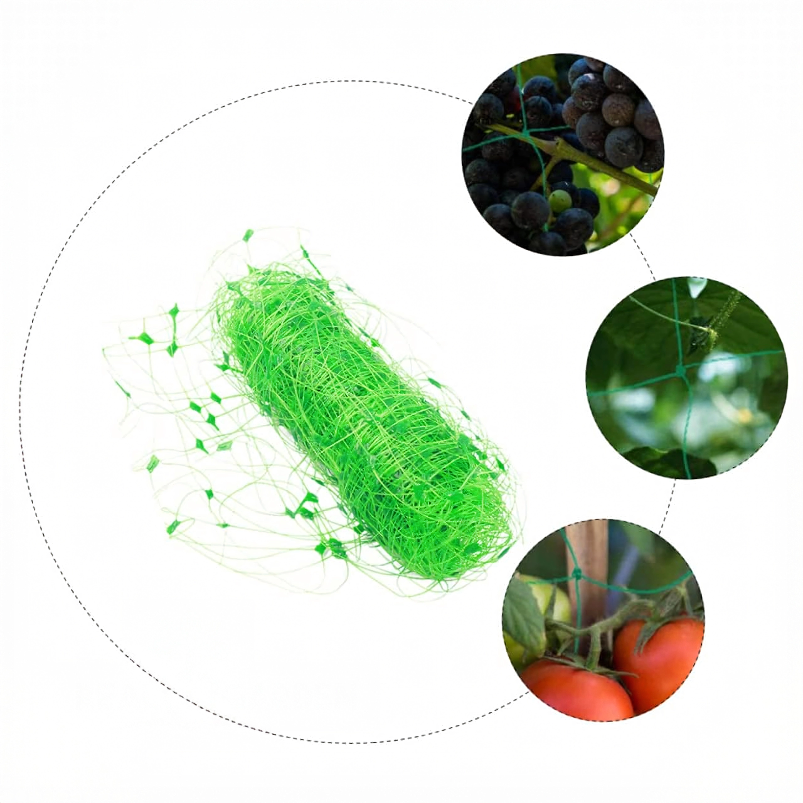 L’installation est simple – le filet peut être raccourci librement, fixé à des supports ou à une structure de serre, et les tiges peuvent y être attachées progressivement. Il est idéal pour les concombres, haricots, pois, tomates et les plantes grimpantes ornementales. La maille serrée fournit de nombreux points d’appui pour l’enroulement naturel des tiges.