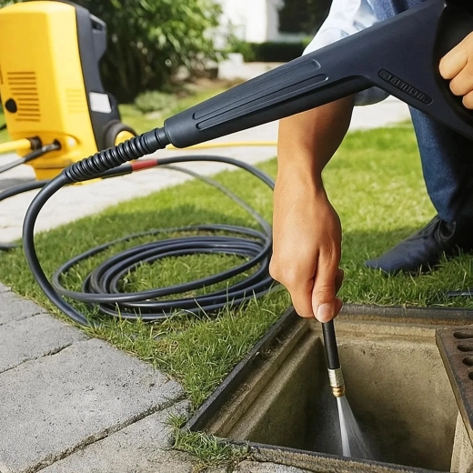 Rinçage haute pression des évacuations bouchées
