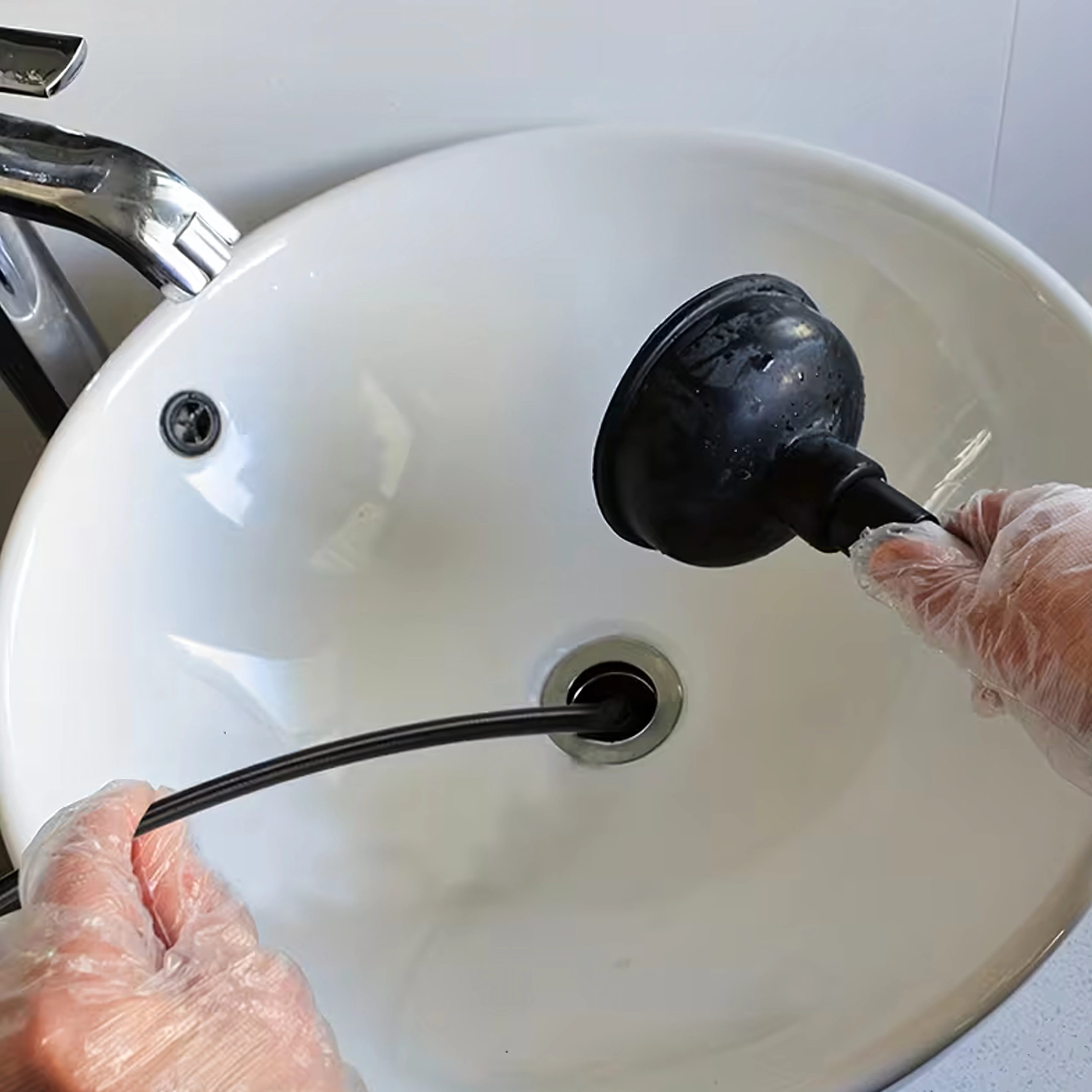 Le tuyau long et souple passe fiablement à travers les siphons et coudes de tuyauterie et atteint directement le point de bouchage.