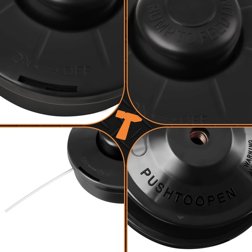 La structure de qualité en PP et nylon résiste aux chocs et aux contraintes lors du travail dans l’herbe dense. La tête accepte des fils d’un diamètre de 1,5 à 3 mm, vous permettant de choisir facilement l’épaisseur idéale selon le terrain et la végétation. Les loquets solides du couvercle empêchent toute ouverture involontaire pendant la coupe, augmentant ainsi la sécurité et la fiabilité.