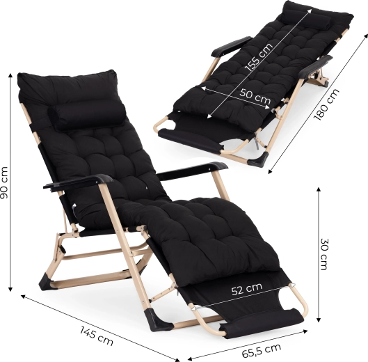- 2-en-1 – fauteuil et chaise longue : utilisation polyvalente pour la détente et le bronzage.