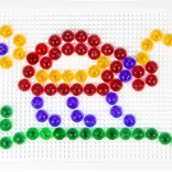 Les chevilles translucides et colorées apportent de l’éclat à chaque motif et motivent les enfants à essayer de nouvelles combinaisons de formes et de couleurs.