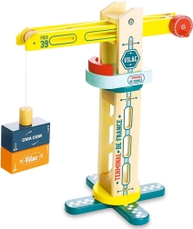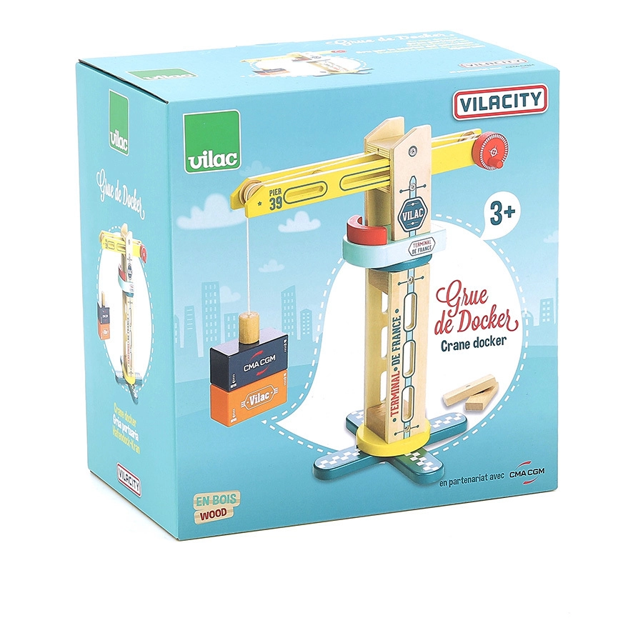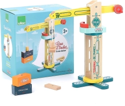 La grue portuaire en bois Vilac Vilacity est l’accessoire idéal pour tous les petits bâtisseurs et amateurs de circuits ferroviaires. Grâce au système magnétique, les enfants saisissent et déplacent facilement les cargaisons, tandis que la construction robuste permet une rotation fluide et des mouvements dans plusieurs directions.