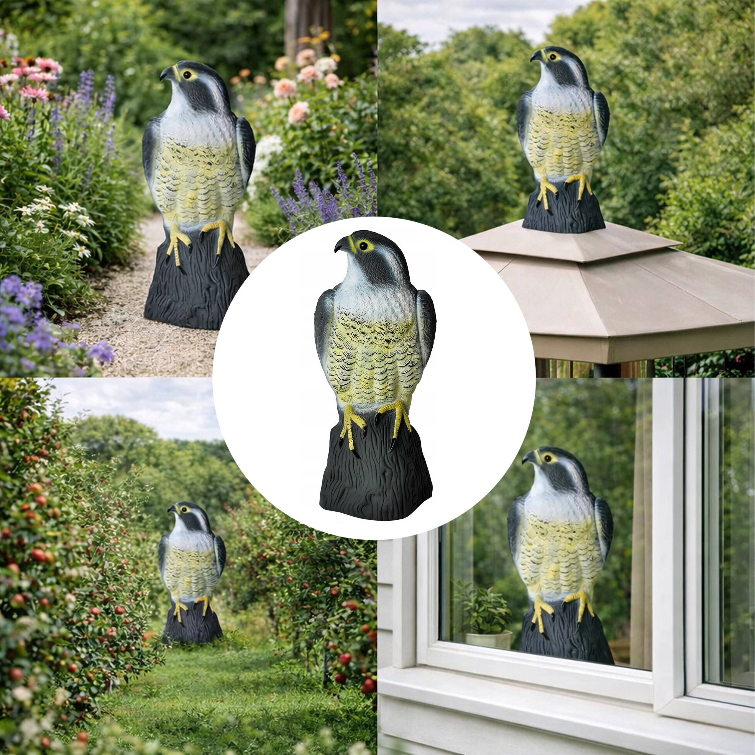 La coloration fidèle, la texture du plumage et la posture naturelle du faucon renforcent l’effet psychologique sur les petits oiseaux et empêchent leur perchoir.