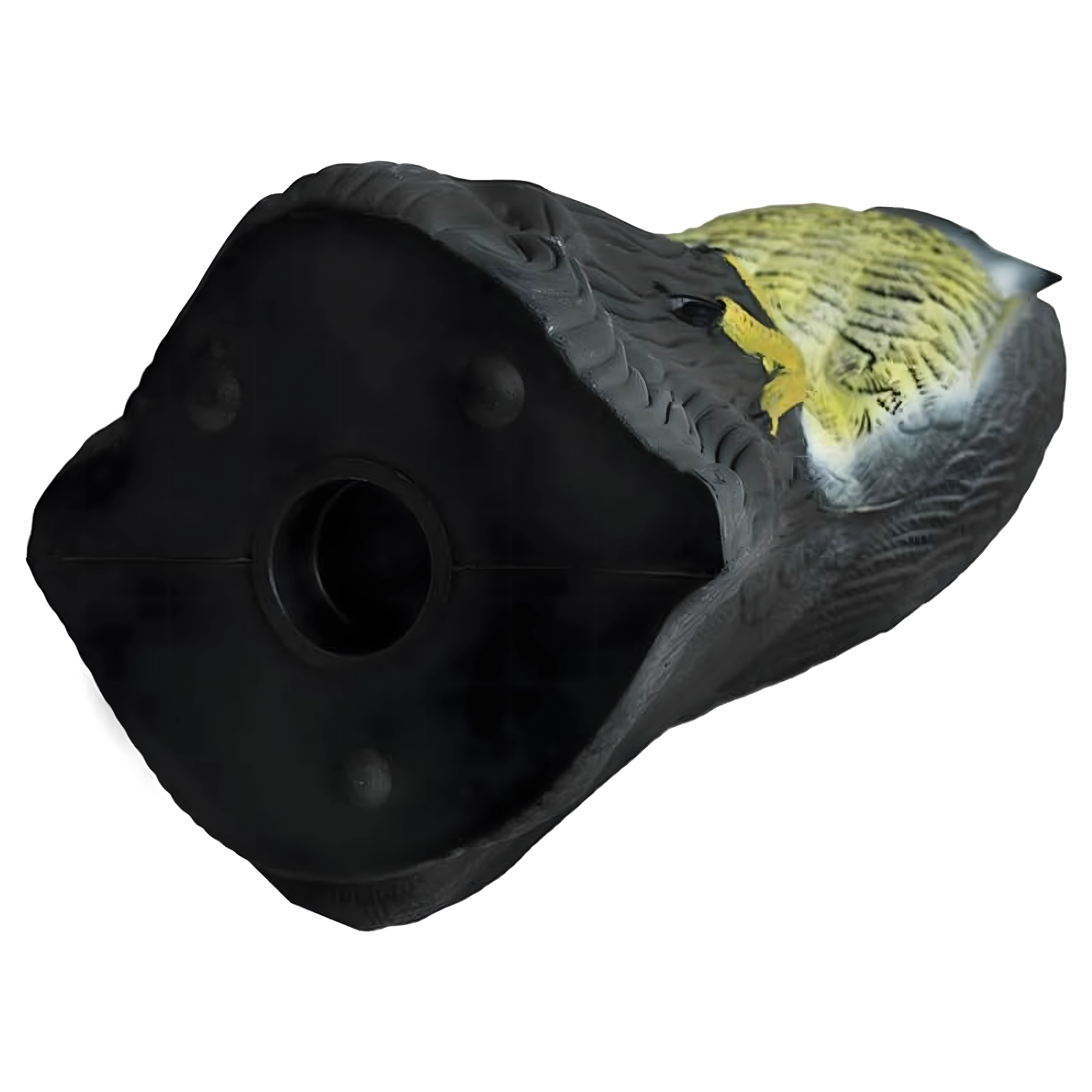 La maquette est fabriquée en plastique durable adapté à une utilisation extérieure toute l’année. Sa base stable permet une pose facile sur des surfaces planes (rebords, garde-corps, toits, terrasses, serres, massifs). Pour une efficacité maximale, déplacez-la occasionnellement afin d’éviter que les oiseaux ne s’y habituent.
