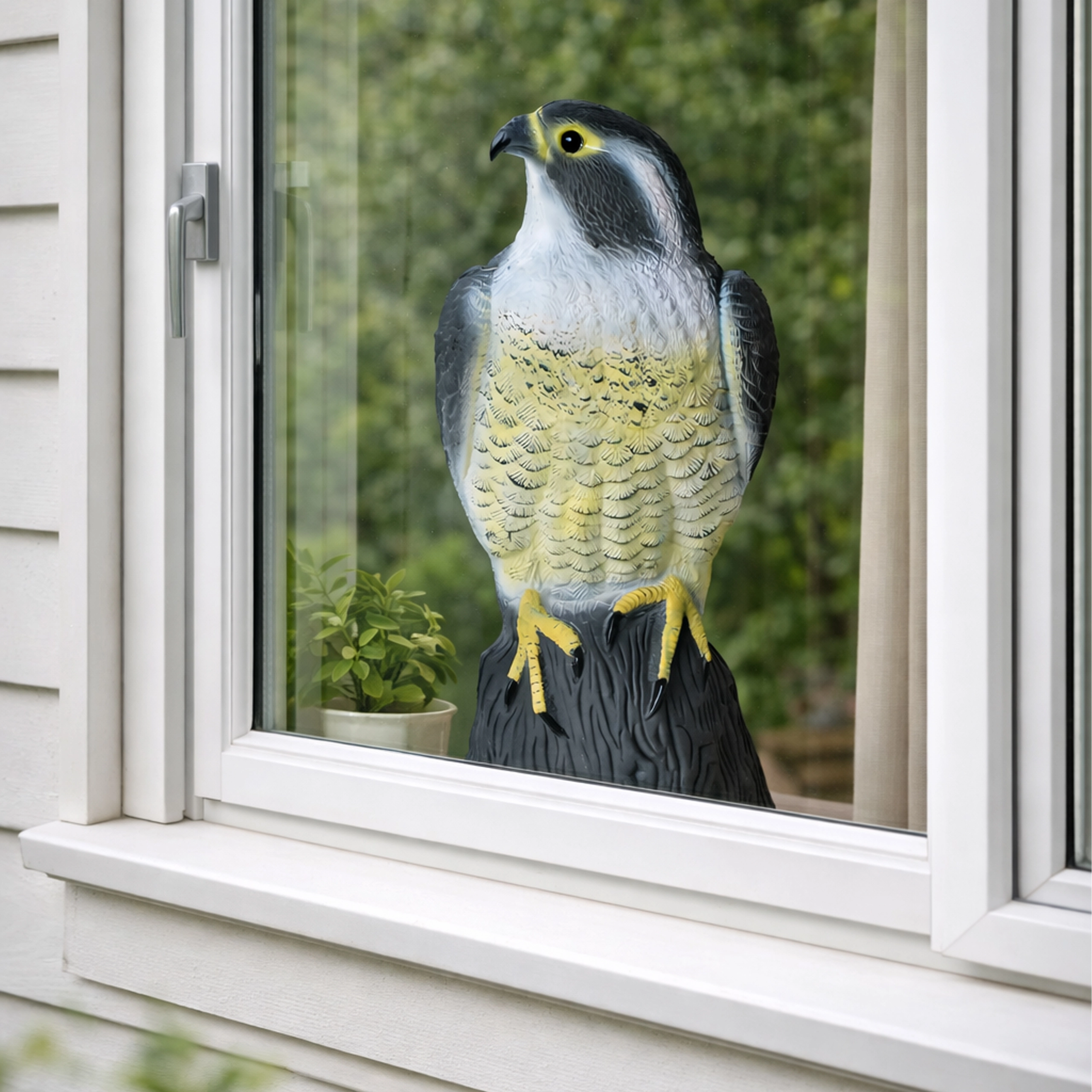 Protégez vos récoltes, appuis de fenêtre et garde-corps des salissures et des dégradations causées par les oiseaux. Cette maquette réaliste de faucon exploite la peur naturelle des petits oiseaux envers les rapaces, agissant ainsi comme un effaroucheur efficace sans produits chimiques ni bruit. Des proportions fidèles, un plumage détaillé et une coloration contrastée renforcent son caractère convaincant en milieu urbain comme naturel.
