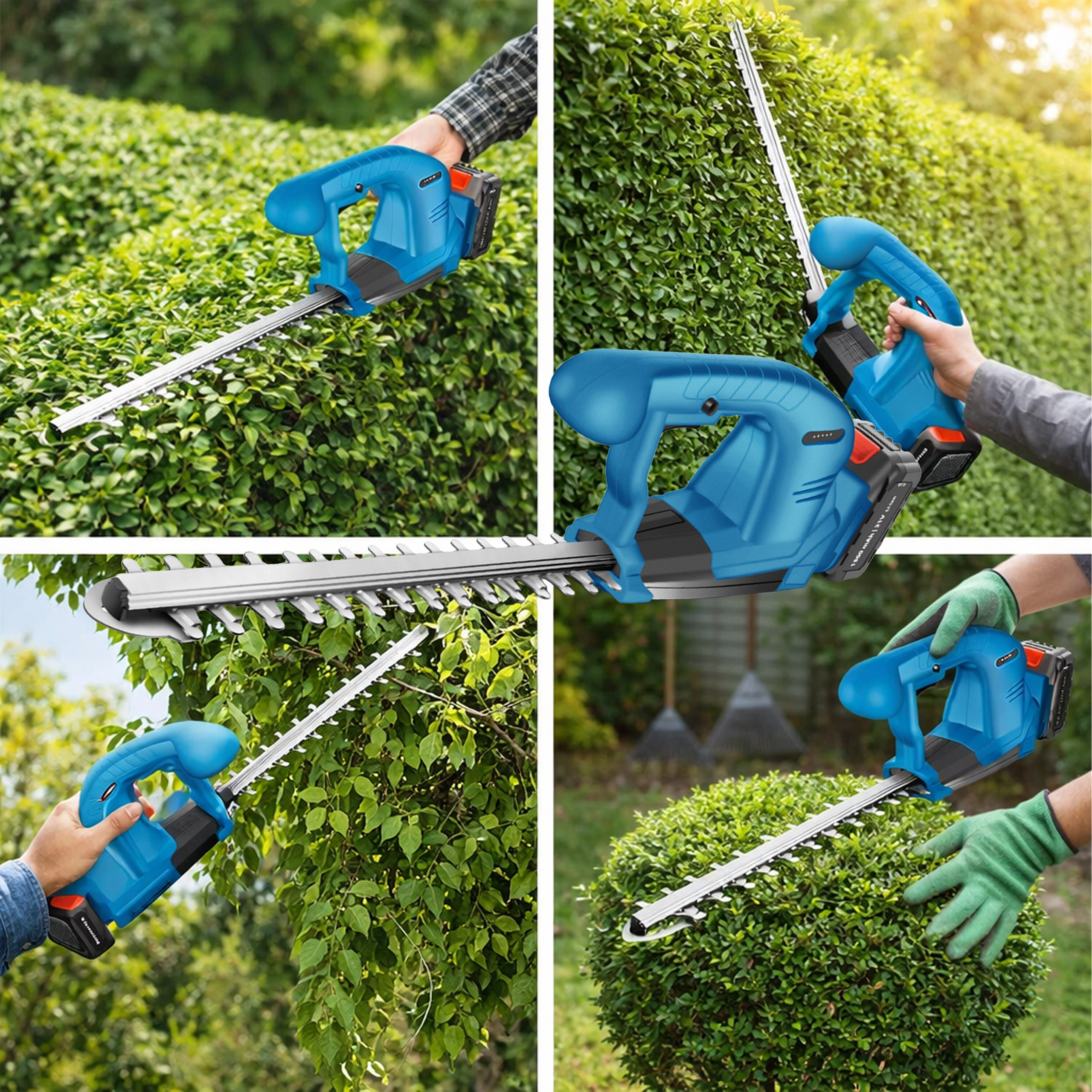 Taille-haies sans fil performant pour une coupe rapide et précise des arbustes et haies. Grâce au fonctionnement sans fil, à la lame double action longue et à la poignée ergonomique, l’entretien du jardin est confortable et sûr. Inclus : 2× batteries pour travailler plus longtemps sans interruption.