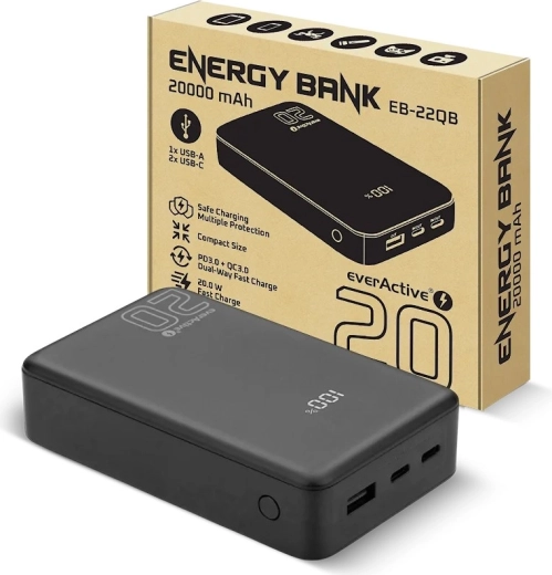 Une source d’énergie fiable pour les déplacements comme pour le bureau. Cette batterie externe de 20 000 mAh, offrant jusqu’à 20 W, recharge rapidement les smartphones modernes, tablettes et petits appareils électroniques. Grâce à deux ports USB‑C (entrée/sortie) et un USB‑A, vous pouvez alimenter jusqu’à trois appareils simultanément, tandis que l’écran LCD indique précisément l’état de la batterie.