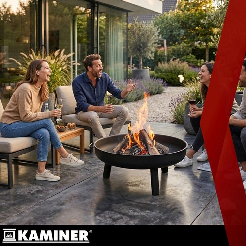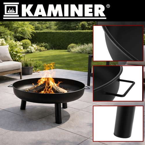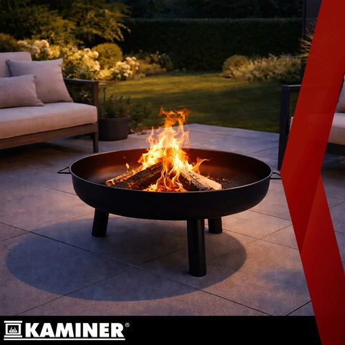 Le grand brasero KAMINER de 80 cm de diamètre est un choix idéal pour les soirées en famille ou entre amis. La vasque large et peu profonde en métal résistant garantit une combustion sûre et maîtrisée du bois ou du charbon de bois, tandis que le trépied offre une grande stabilité et une garde au sol au-dessus du revêtement.