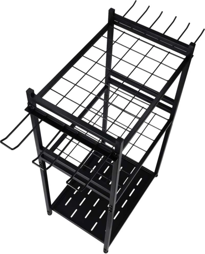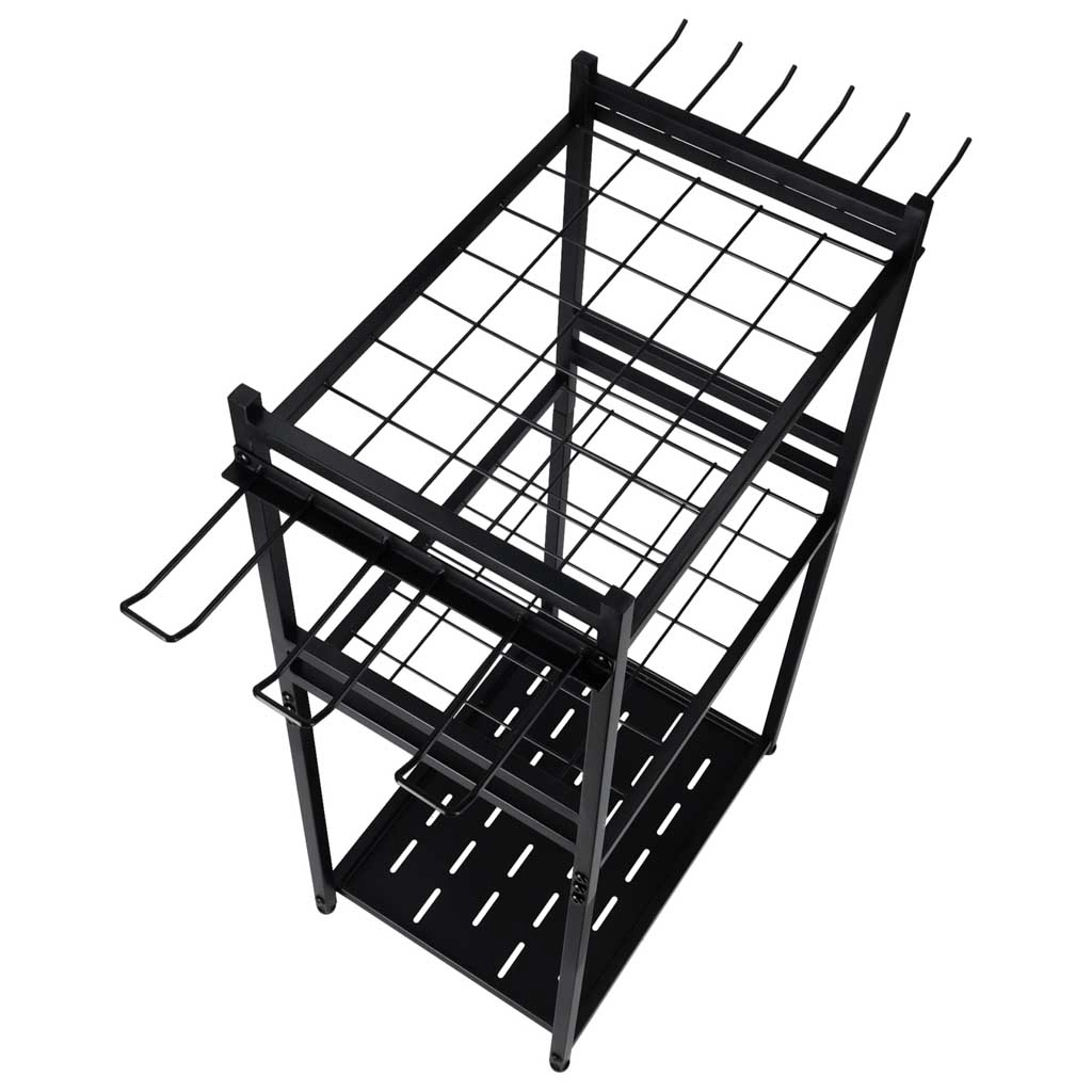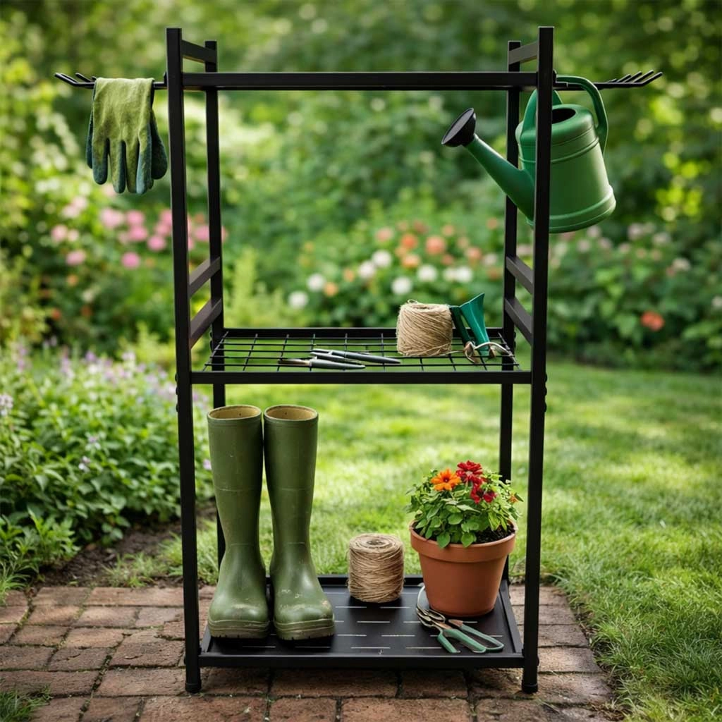 Gardez votre jardin, garage et atelier parfaitement organisés avec le support métallique LUARO. Grâce à ses trois niveaux d’étagères et à ses crochets latéraux, vous bénéficiez d’un rangement clair des outils, d’un accès rapide et d’une structure stable et résistante pour une utilisation quotidienne.