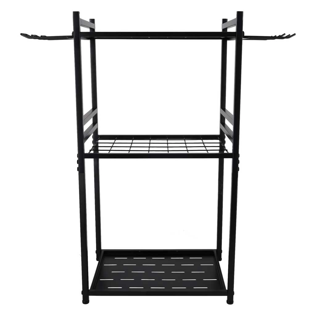 Convient au jardin, à la terrasse, au garage, à la cave et à l’abri de jardin. La solution multi-niveaux avec crochets latéraux économise de l’espace et accélère le travail. Le support est conçu pour une longue durée de vie et une utilisation quotidienne.
