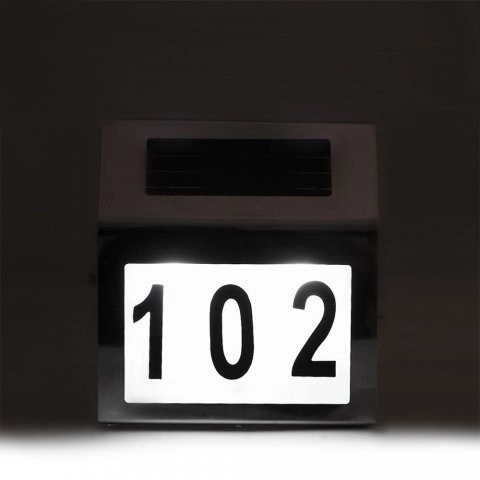 L’éclairage solaire pour numéro de maison MACLEAN ENERGY MCE172 combine un look moderne et une fonctionnalité pratique. Le panneau solaire intégré recharge en journée l’accumulateur de 600 mAh et, à la nuit tombée, active une LED lumineuse pour une parfaite lisibilité du numéro depuis la rue. Idéal pour l’identification d’adresses de maisons individuelles, chalets ou locaux commerciaux.