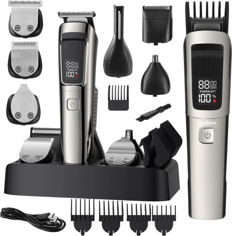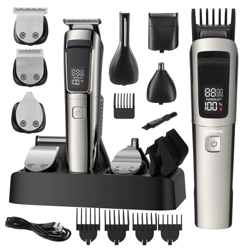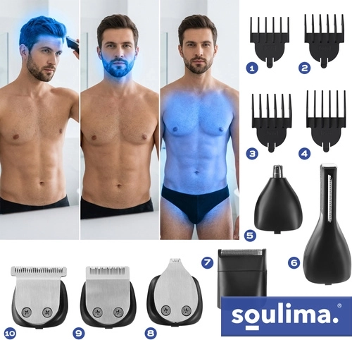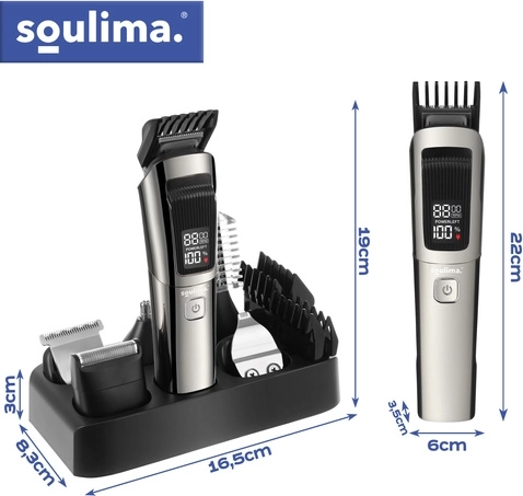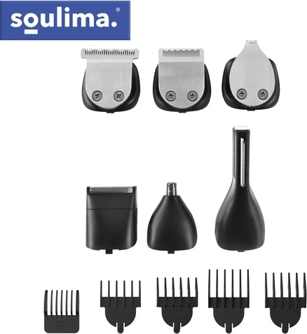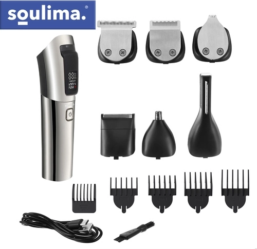 Avec le kit SOULIMA 8‑en‑1, vous disposez d’un équipement complet pour l’entretien des cheveux, de la barbe, de la moustache, des pattes, du corps ainsi que des poils du nez et des oreilles. Les lames auto‑aiguisantes offrent une coupe fluide et régulière sans tiraillements, tandis que la large tête à technologie de coupe rapide réduit le temps de mise en forme jusqu’à 30 %.