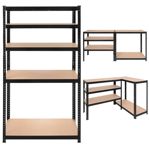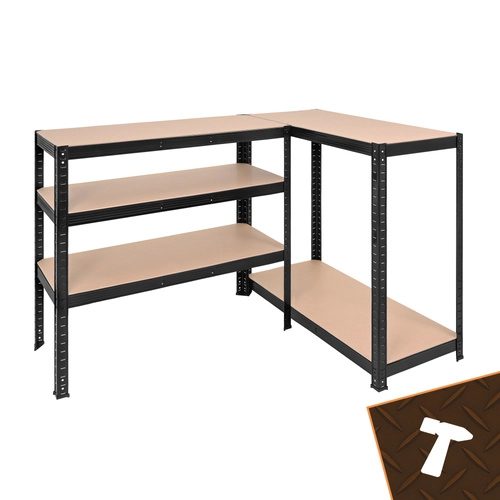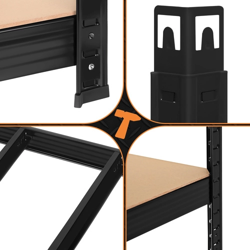 Le montage est rapide et sans vis – les éléments s’emboîtent, un simple maillet en caoutchouc suffit. Les étagères sont réglables en hauteur par pas de 30 mm, vous pourrez ainsi ranger aisément boîtes, outils, pneus et provisions. Le système 3 en 1 permet de monter une étagère haute, de la diviser en deux segments plus bas ou de créer une solution d’angle pour une utilisation optimale de l’espace.