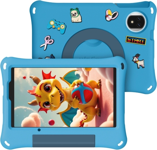 Tablette pour enfants robuste avec écran 8", connexion 4G et grande mémoire 4/128 Go, livrée avec un étui solide. Grâce aux pare-chocs amortisseurs, au support intégré et à la prise en main facile, elle est idéale pour les jeux, les vidéos et l’apprentissage. Étui antichoc, support intégré, prise sécurisée et puissance et stockage suffisants pour le divertissement et l’éducation des enfants.